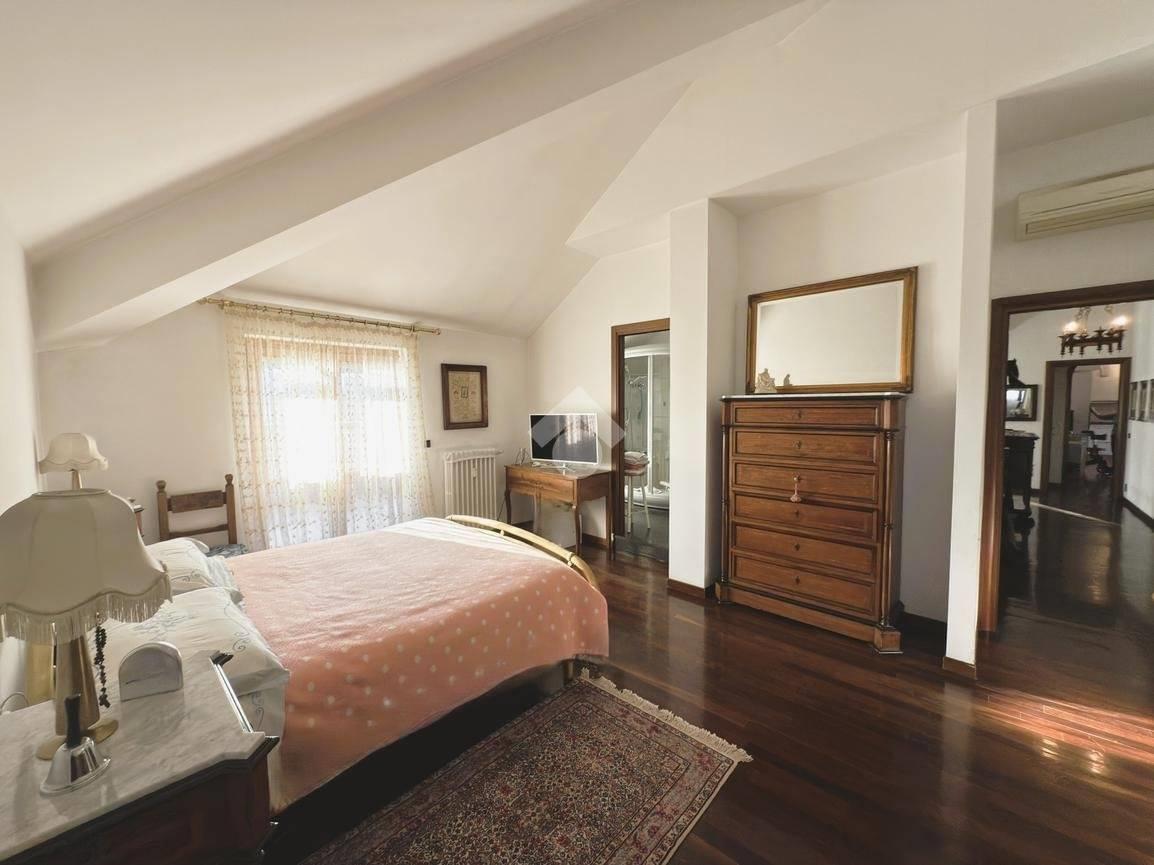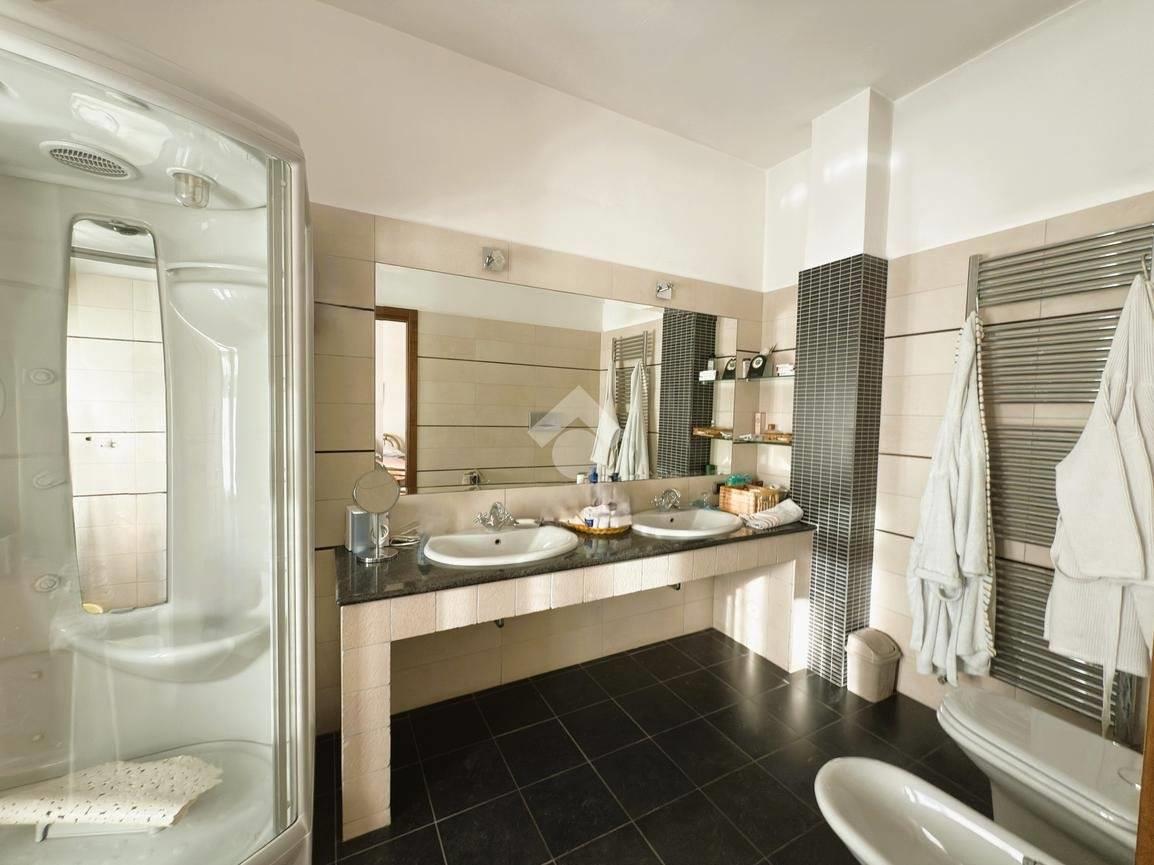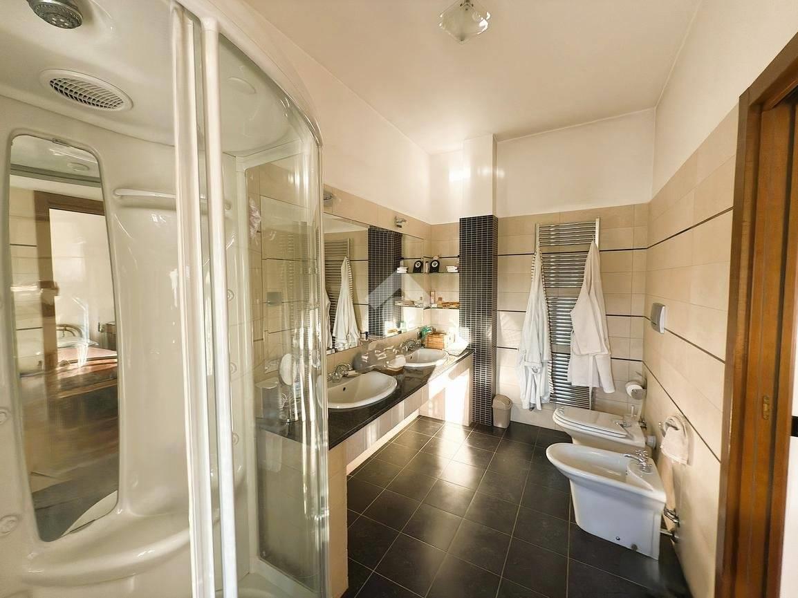 La zona notte, ben separata tramite disimpegno, ospita una camera matrimoniale con bagno privato e camino, due camere doppie, due camerette ed il terzo bagno. L’immobile è inoltre dotato di aria condizionata, per il massimo comfort abitativo.