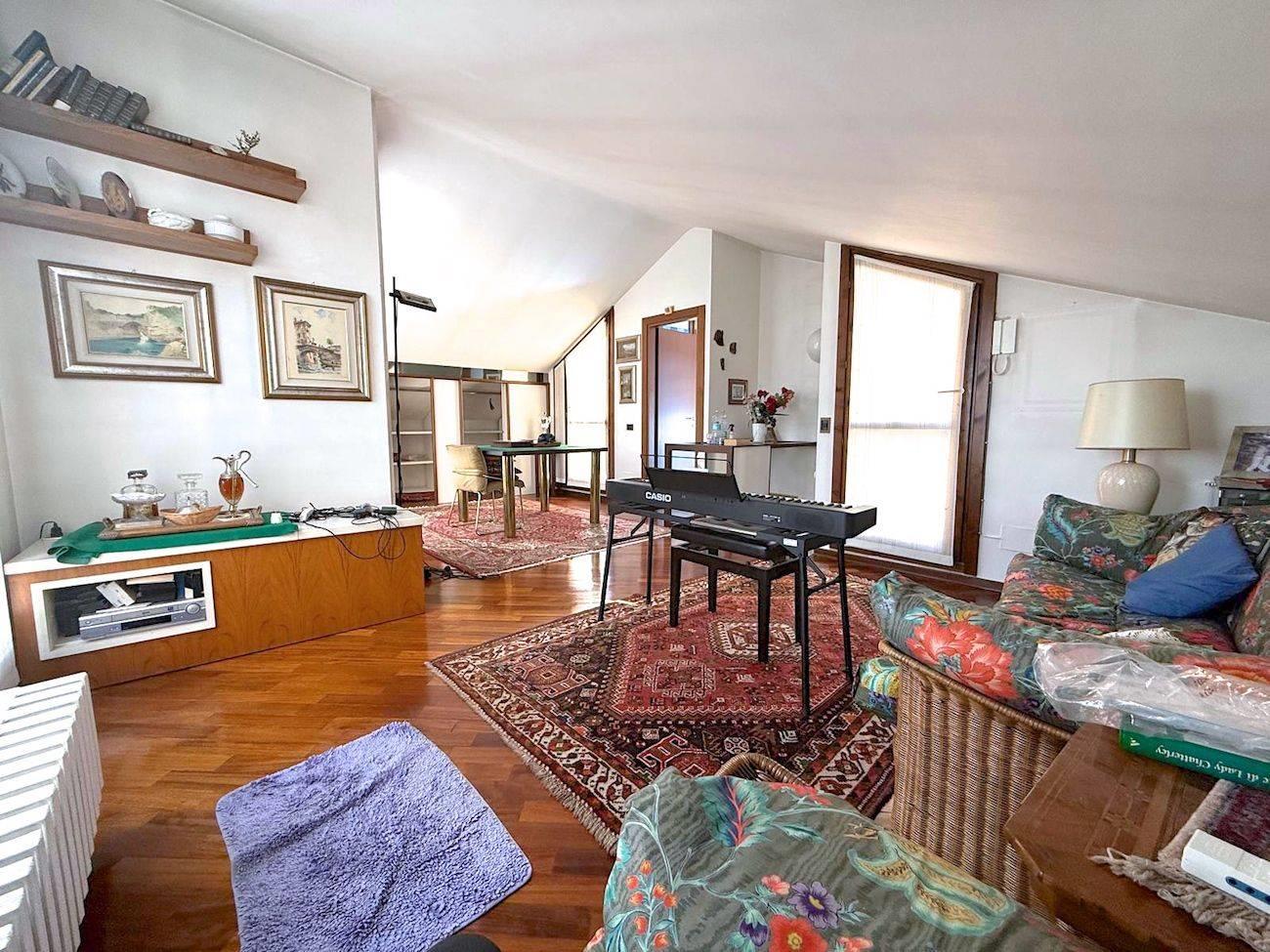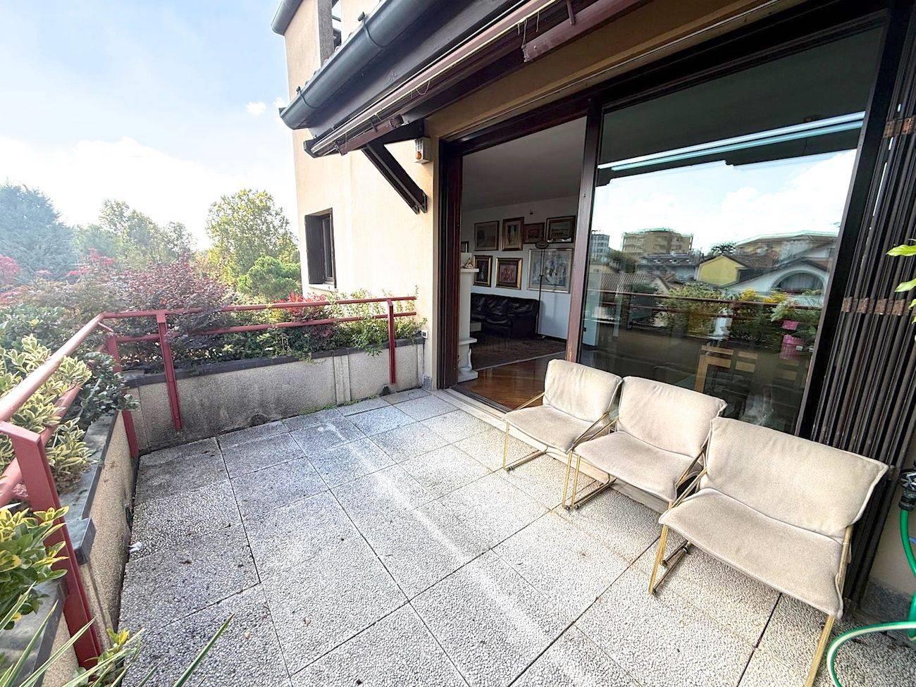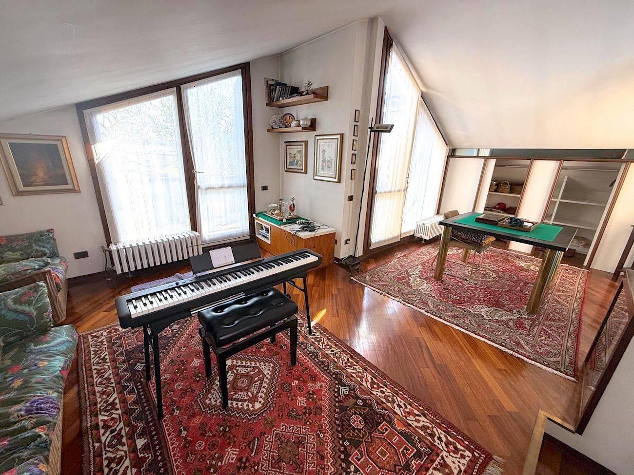 Villasanta Centralissimo Fronte Parco: in contesto Signorile con affaccio diretto sul Parco di Monza, splendido attico di 4 locali e doppi servizi con superattico di due vani, servizi e terrazzi, composto da: P.IV ingresso, soggiorno doppio con possibilità ripristinare ulteriore camera ed affaccio su ampio terrazzo vivibile, cucina abitabile on balcone, camera matrimoniale, bagno, lavanderia e ampio disimpegno / ripostiglio; P.V collegato da comoda scala interna, ampia mansarda abitabile con possibilità di ricavare ulteriori due camere da cui si accede ad un ampio terrazzo vivibile di 25 mq. oltre ad ulteriori due terrazzini, bagno. Ottime finiture, tutto in parquette. Completa la proprietà una cantina. Possibilità box. Da vedere!!!