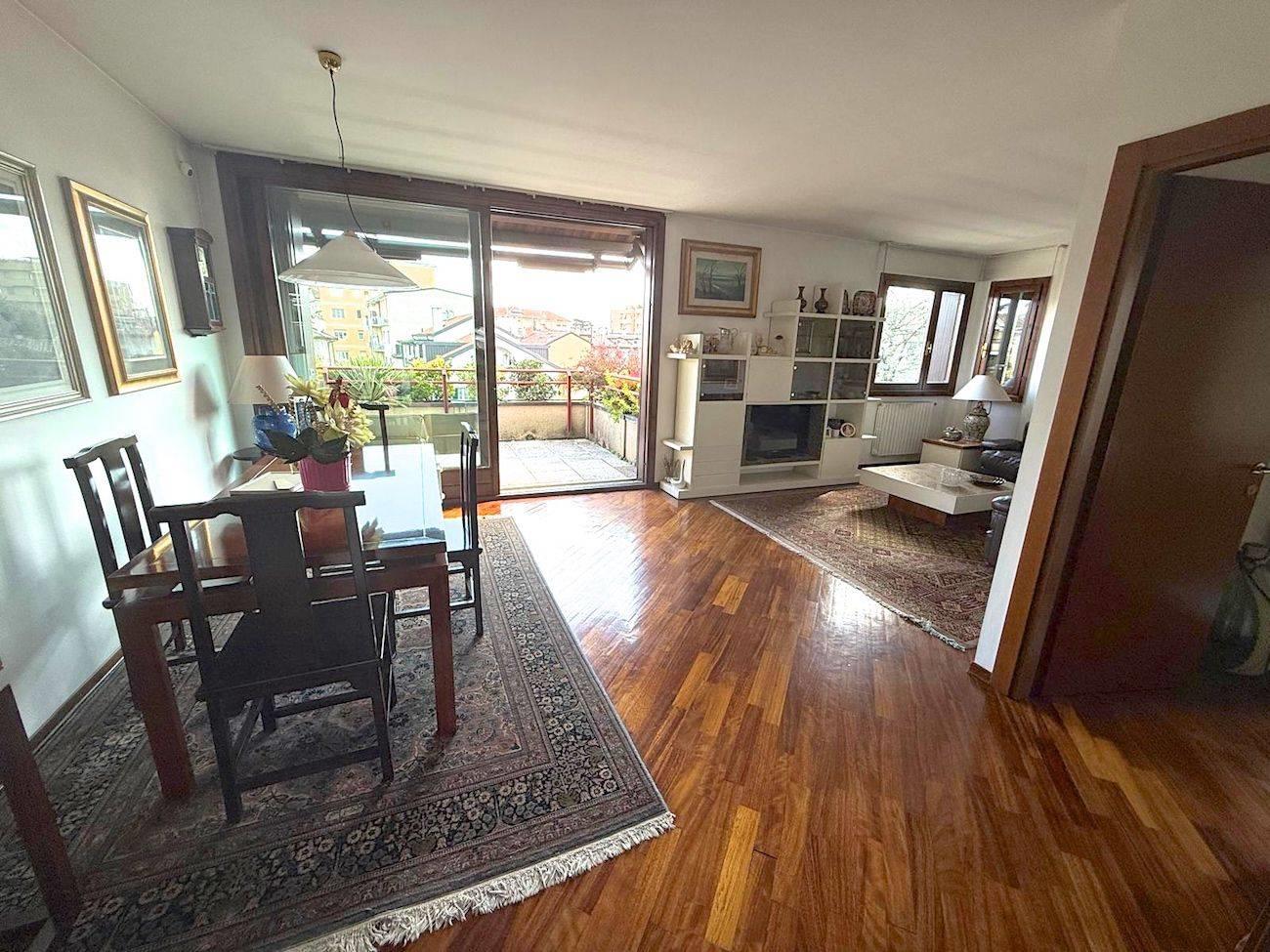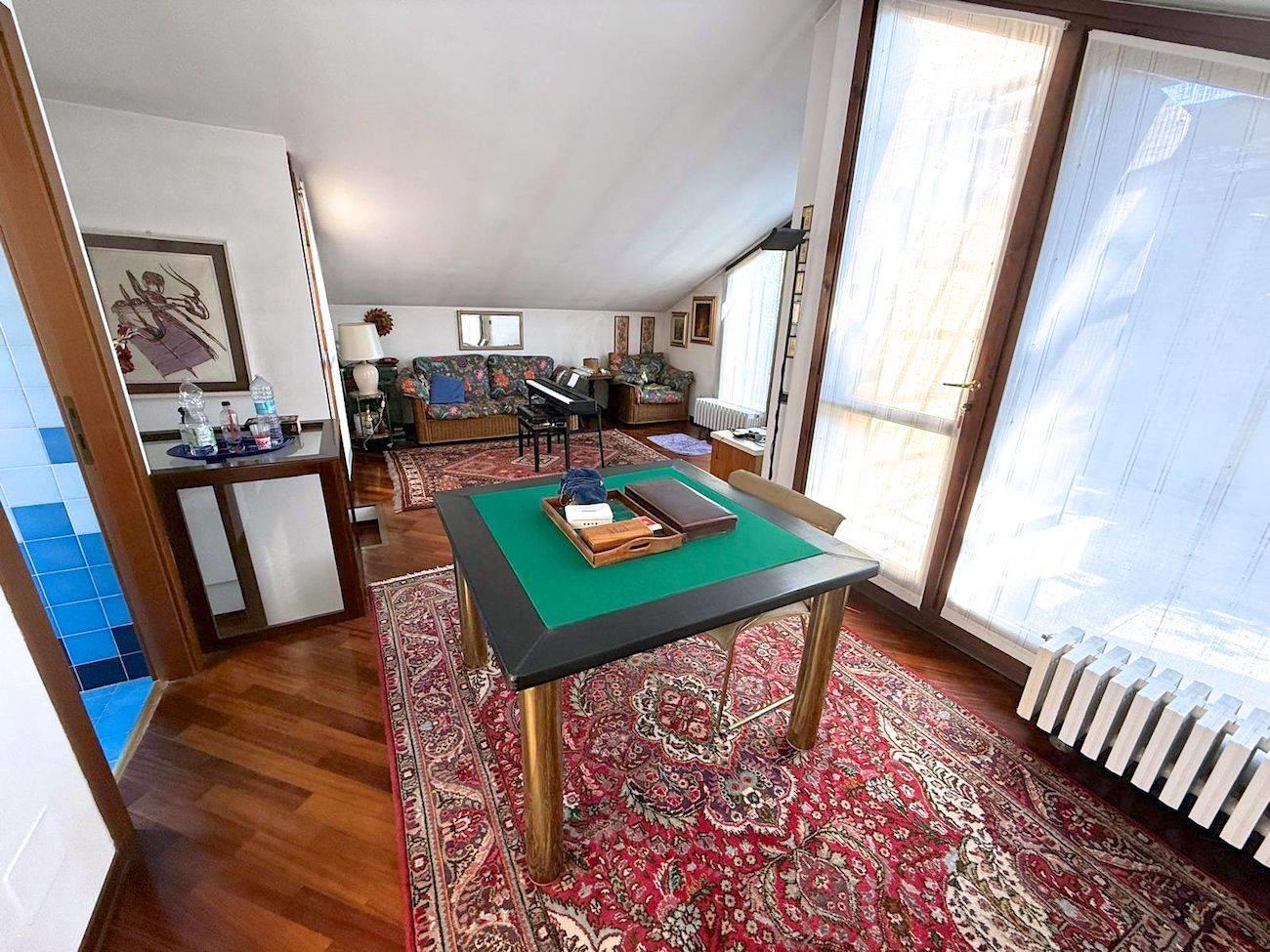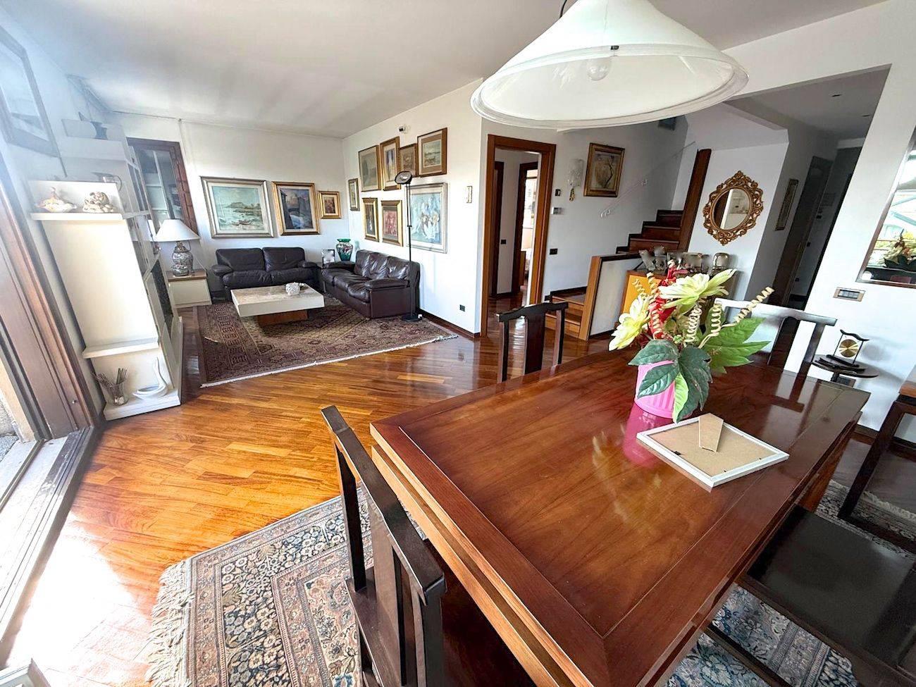 Villasanta Centralissimo Fronte Parco: in contesto Signorile con affaccio diretto sul Parco di Monza, splendido attico di 4 locali e doppi servizi con superattico di due vani, servizi e terrazzi, composto da: P.IV ingresso, soggiorno doppio con possibilità ripristinare ulteriore camera ed affaccio su ampio terrazzo vivibile, cucina abitabile on balcone, camera matrimoniale, bagno, lavanderia e ampio disimpegno / ripostiglio; P.V collegato da comoda scala interna, ampia mansarda abitabile con possibilità di ricavare ulteriori due camere da cui si accede ad un ampio terrazzo vivibile di 25 mq. oltre ad ulteriori due terrazzini, bagno. Ottime finiture, tutto in parquette. Completa la proprietà una cantina. Possibilità box. Da vedere!!!
