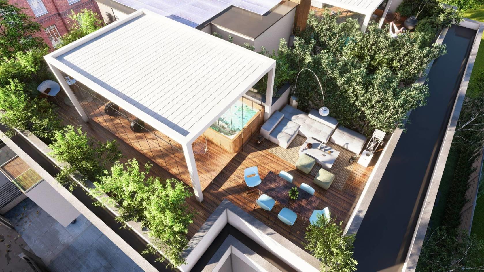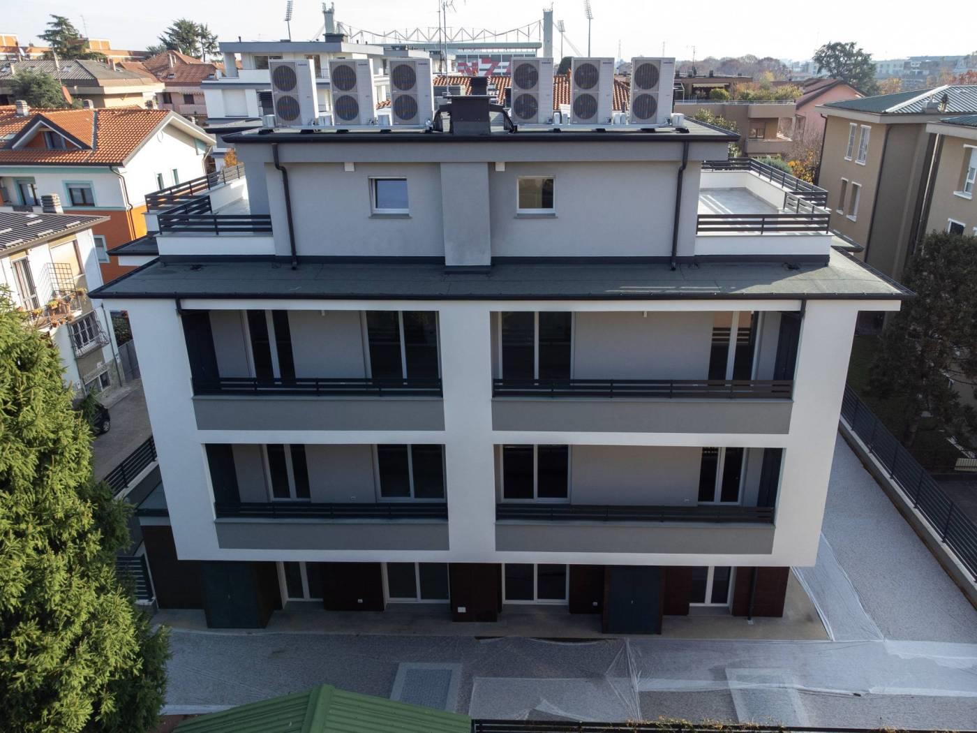 VENDITA DIRETTA DAL COSTRUTTORE: la tua nuova casa in classe A4. Ultima disponibilità in palazzina di prestigio di sole 6 unità abitative: attico su due livelli (secondo e terzo piano) con terrazzo panoramico, pensato come ampliamento all'aperto degli spazi abitativi. Entrando nell'unità abitativa, si trova un'ampia zona living con soggiorno e angolo cottura, due camere da letto matrimoniali e un bagno finestrato. Attraverso una scala di design si accede al secondo piano dell'attico, che è composto da un ampio locale open space (che può essere utilizzato come terza camera, secondo soggiorno, studio, locale palestra, ecc.) dotato di predisposizione per una seconda cucina, un secondo bagno finestrato e un ampio terrazzo panoramico con vista sulle montagne, perfetto per pranzi o momenti di convivialità all'aperto. Gli appartamenti offrono spazi luminosi e ben distribuiti, ideali per soddisfare le esigenze di ogni famiglia. Sono dotati di ogni comfort moderno: riscaldamento a pavimento, ventilazione meccanica controllata, raffrescamento con split Samsung, pannelli fotovoltaici, gestione domotica avanzata, predisposizione alla fibra ottica FTTH per una connessione ultra-veloce e car charger nei box per la mobilità elettrica.