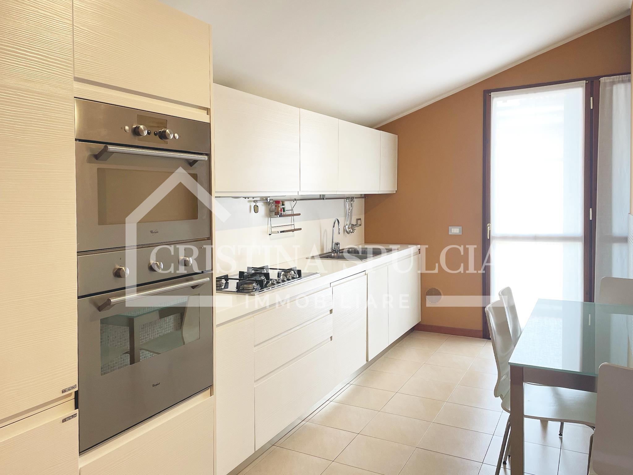 Il trilocale in attico è composto da ingresso, ampia cucina abitabile, luminoso soggiorno, disimpegno zona notte, due camere da letto e doppi servizi. L’appartamento si presenta in ottime condizioni, con finiture eleganti, spazi comodi e un’eccellente luminosità.