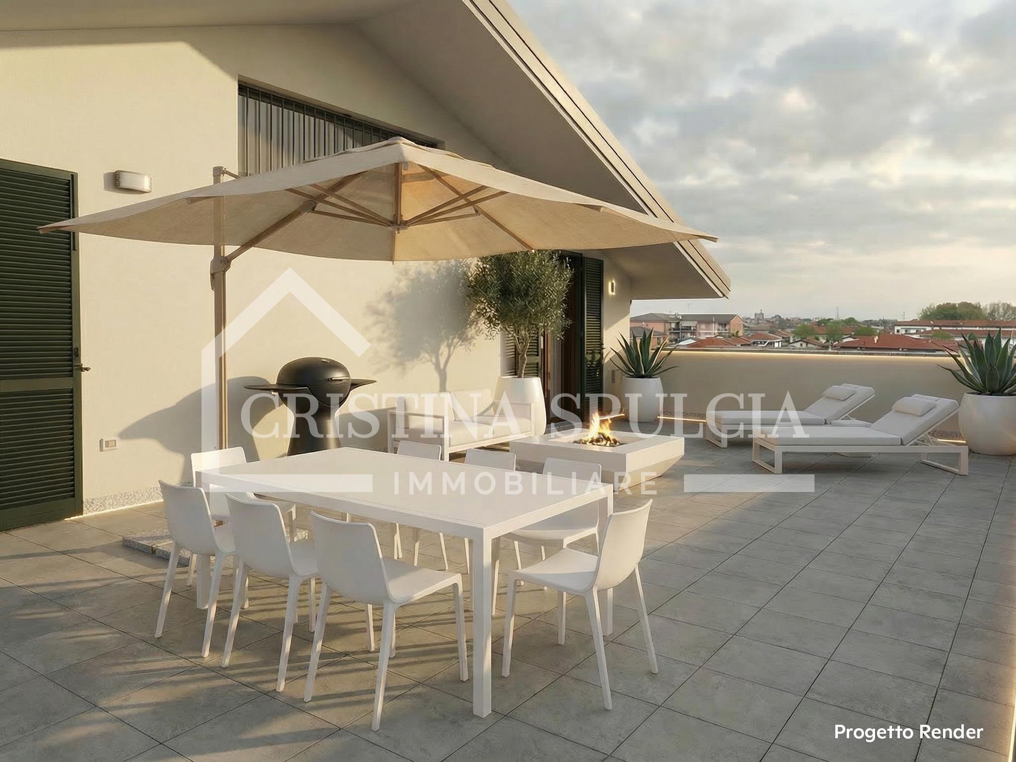 Cristina Spulcia Immobiliare propone in vendita a Muggiò uno splendido trilocale in attico (con ascensore), posto al quarto e ultimo piano, caratterizzato da un ampio terrazzo di 66 mq, perfetto per vivere momenti all’aperto in totale privacy e cantina.