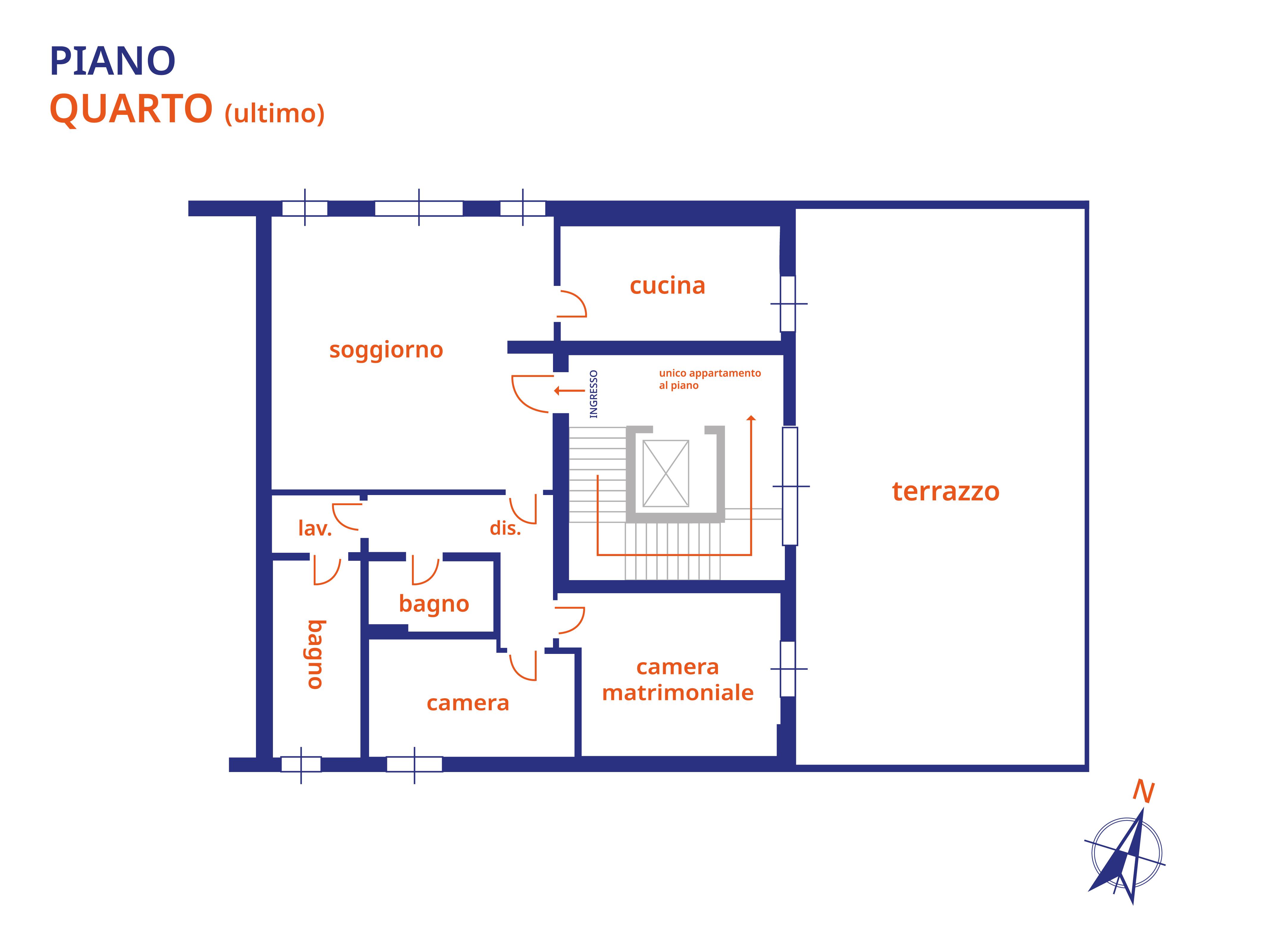 Altro elemento di grande valore è l’unicità al piano: al quarto piano è presente un solo appartamento, garanzia di maggiore privacy e tranquillità.