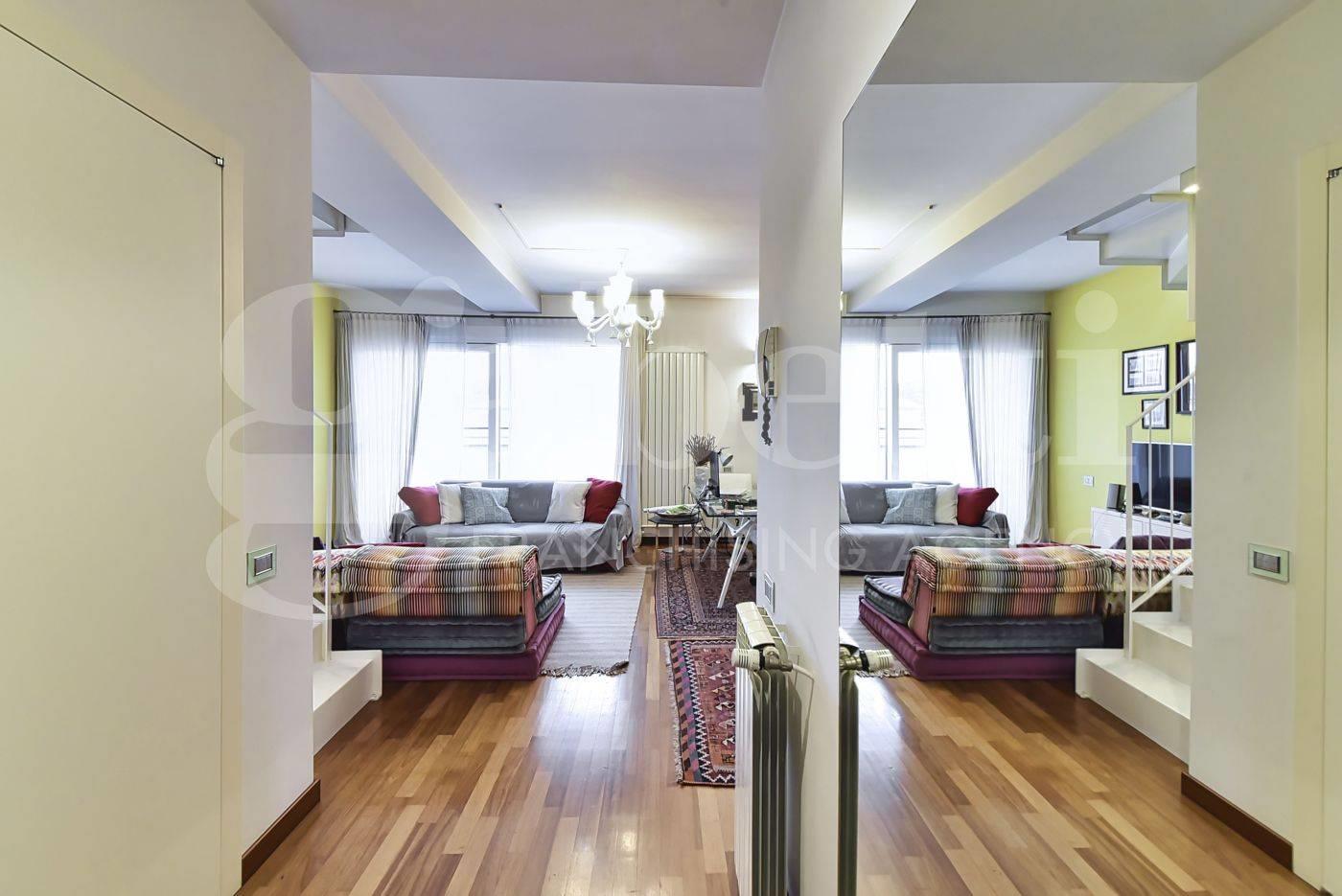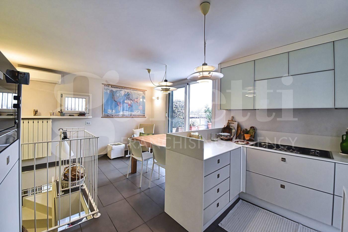 MONZA/SAN BIAGIO - Soluzione abitativa di circa 112 mq disposta su due livelli (piano terzo ed ULTIMO), beneficiata da TRIPLA ESPOSIZIONE (NORD/EST/OVEST) e caratterizzata da un taglio contemporaneo dal gusto industrial, valorizzato dalla scenografica scala interna in ferro. Gli ambienti sono così disposti: al PIANO TERZO funzionale ingresso (con BAGNO DI SERVIZIO) che introduce alla zona giorno costituita dal luminoso LIVING con accesso al BALCONE. Un pratico disimpegno conduce alla zona notte composta da CAMERA DA LETTO e CAMERETTA, entrambe con BALCONE e BAGNO FINESTRATO. Al piano superiore si sviluppa un ampio locale hobby con affaccio sul TERRAZZO, ideale come prolungamento della zona living e come spazio conviviale e di relax. Completa la proposta abitativa la possibilità di acquistare un BOX (prezzo a parte, € 35.000). IL CONTESTO. Palazzina del 1980 di 4 piani, NON DOTATA DI ASCENSORE, in contesto tranquillo e con spese condominiali estremamente contenute; ideale per chi cerca una soluzione di charme in un ambiente riservato e contemporaneo. LA ZONA. Ci troviamo nel cuore del quartiere San Biagio, uno dei più ricercati di Monza: elegante, ben servito e a pochi passi dal centro storico e dal Parco di Monza. La posizione strategica garantisce la vicinanza a negozi, scuole, servizi pubblici e agli ottimi collegamenti con Milano, rendendo questa proposta perfetta sia per viverci che come investimento.