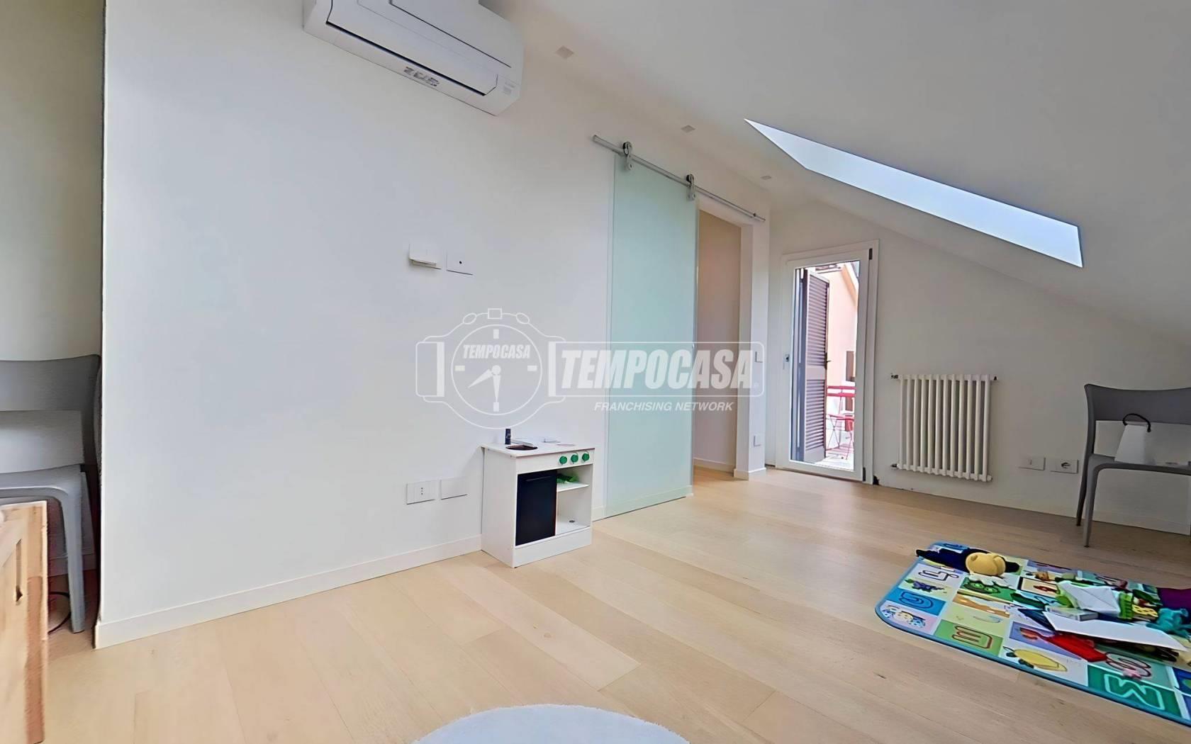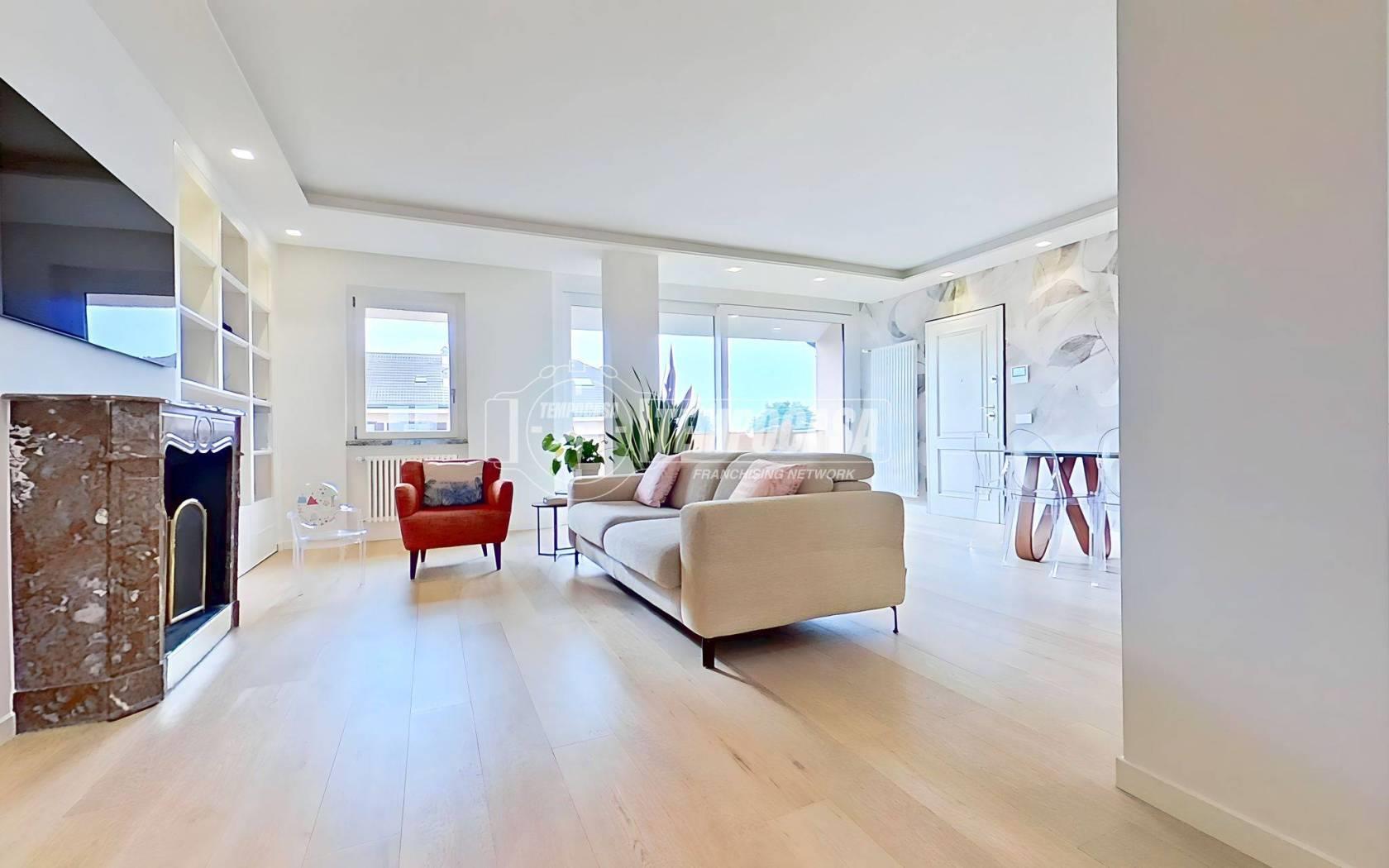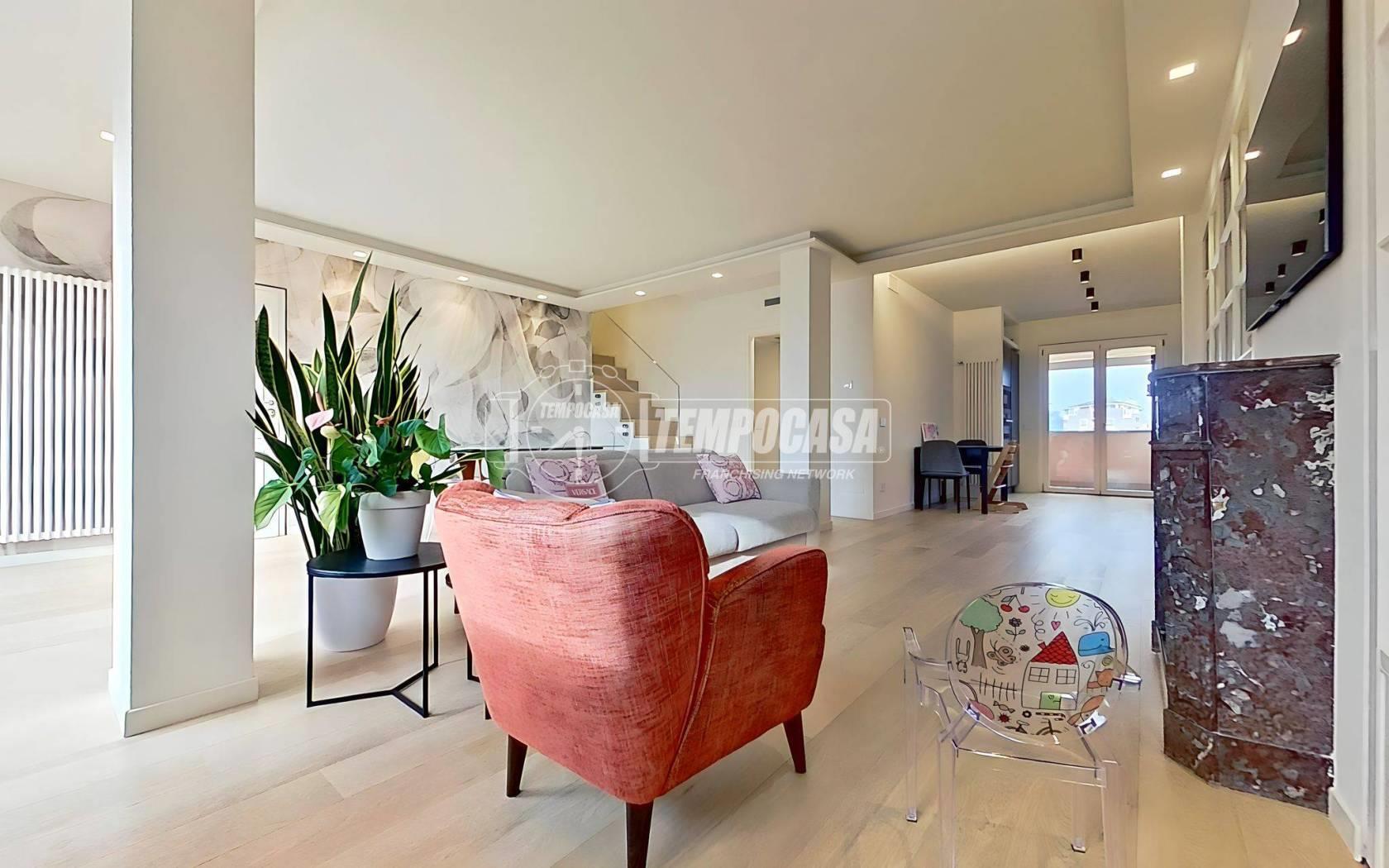 Nel comune di Seregno, proponiamo in vendita un elegante attico di 4 locali disposto su due livelli, COMPLETAMENTE RIPROGETTATO E RISTRUTTURATO NEL 2022 con finiture di pregio, posto al quinto e sesto piano di un moderno complesso residenziale composto di due distinte palazzine, divise tra loro da un curato spazio verde condominiale. La zona, alle porte del centro, è tra le più richieste della città: tranquilla, residenziale e allo stesso tempo vicinissima alla ZTL, ai principali servizi, alle scuole, ai parchi e alle arterie di collegamento che permettono di raggiungere rapidamente sia la SS36 che le località limitrofe.