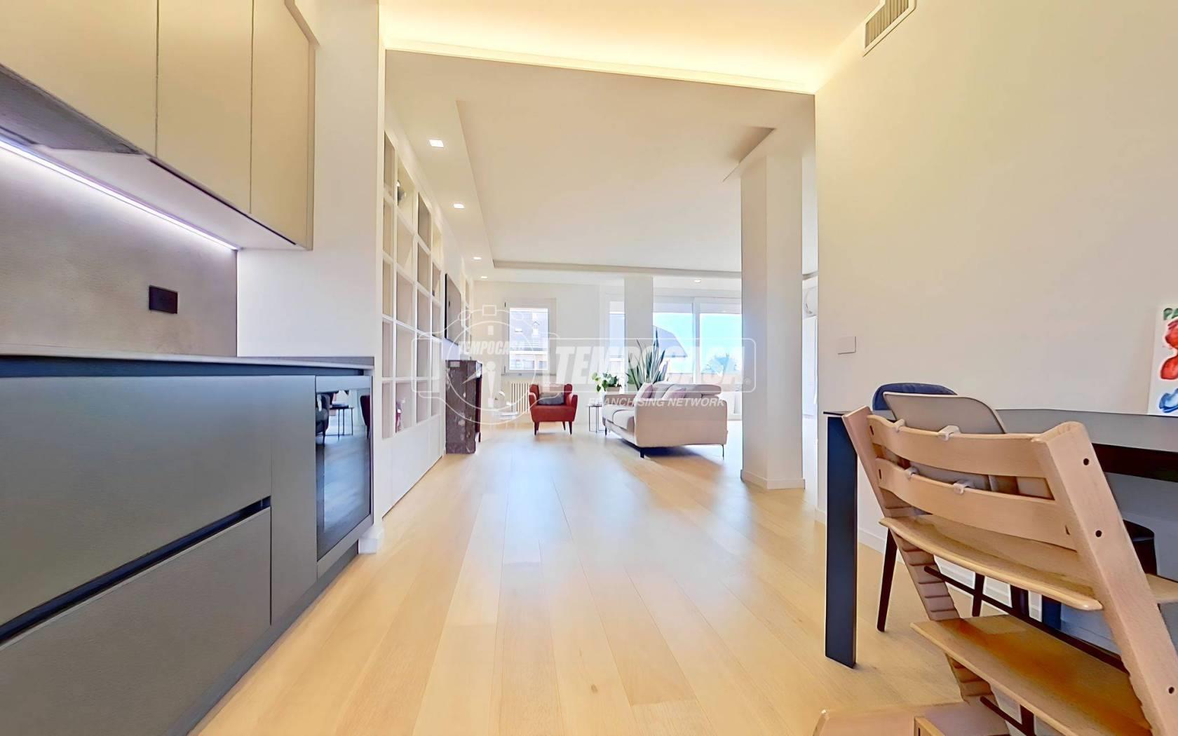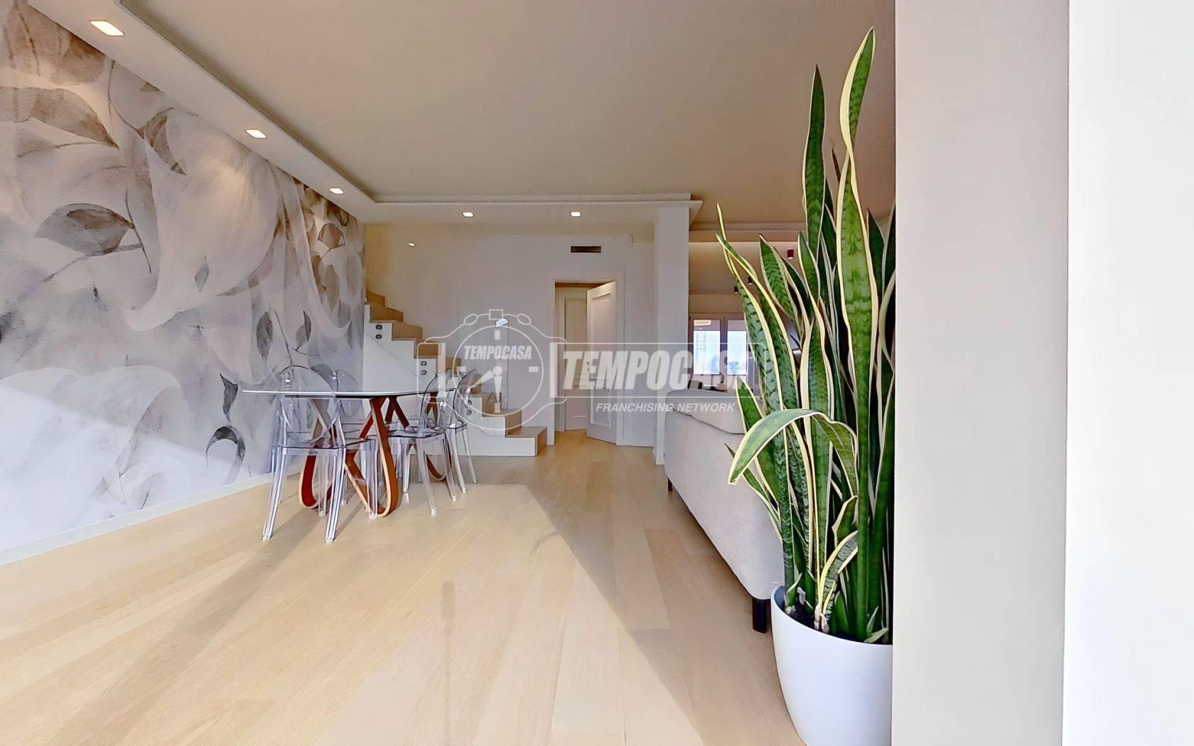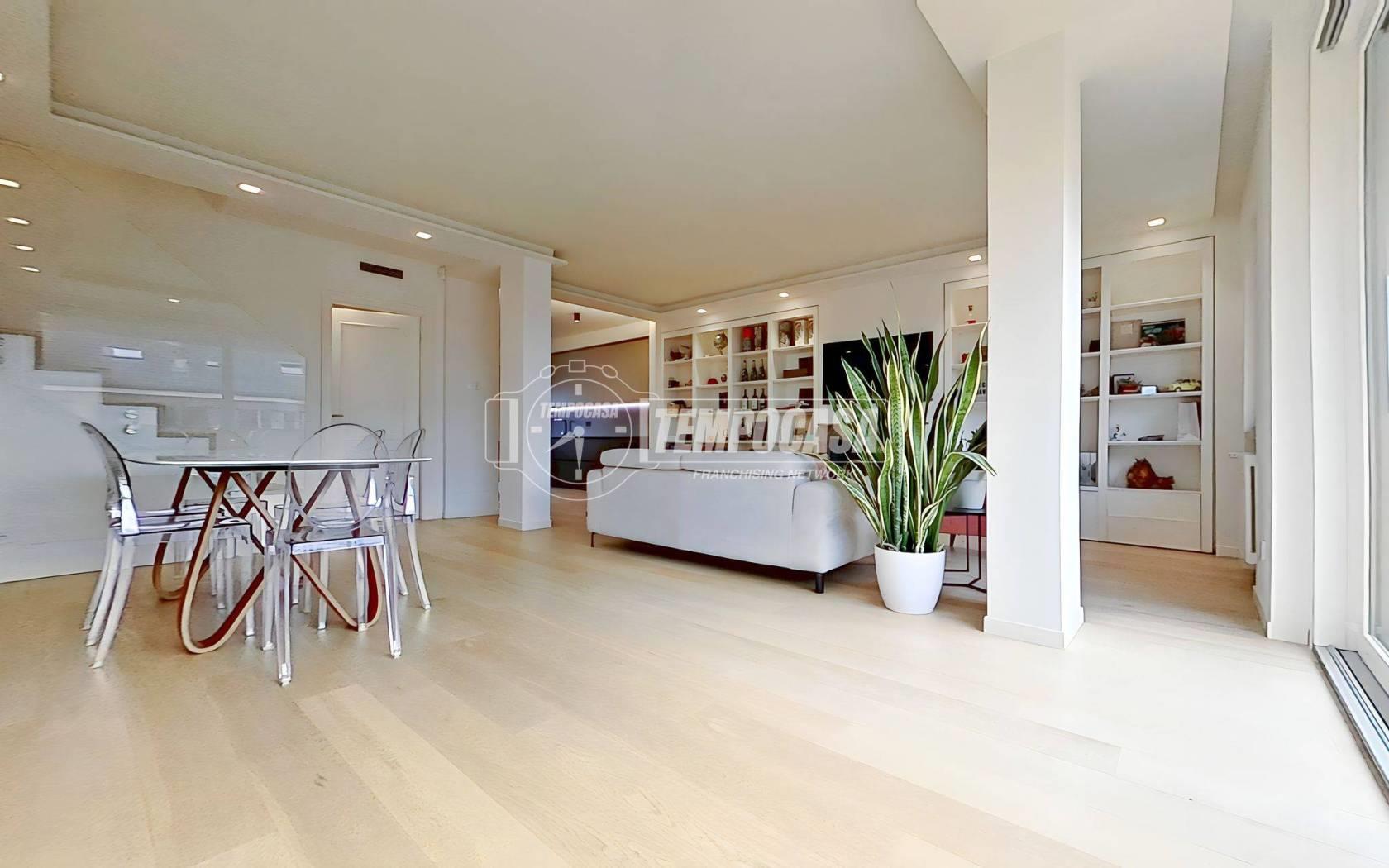 Nel comune di Seregno, proponiamo in vendita un elegante attico di 4 locali disposto su due livelli, COMPLETAMENTE RIPROGETTATO E RISTRUTTURATO NEL 2022 con finiture di pregio, posto al quinto e sesto piano di un moderno complesso residenziale composto di due distinte palazzine, divise tra loro da un curato spazio verde condominiale. La zona, alle porte del centro, è tra le più richieste della città: tranquilla, residenziale e allo stesso tempo vicinissima alla ZTL, ai principali servizi, alle scuole, ai parchi e alle arterie di collegamento che permettono di raggiungere rapidamente sia la SS36 che le località limitrofe.