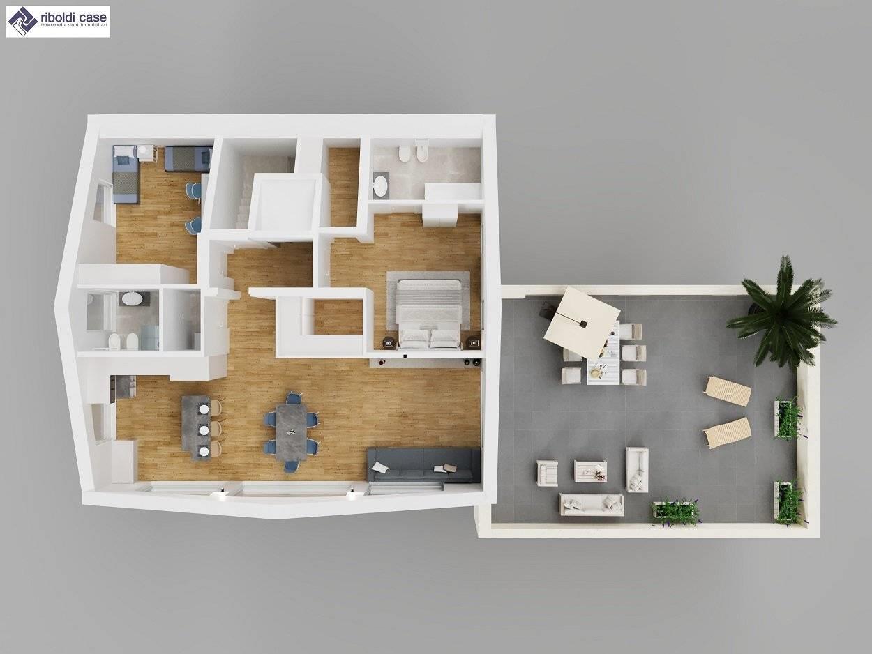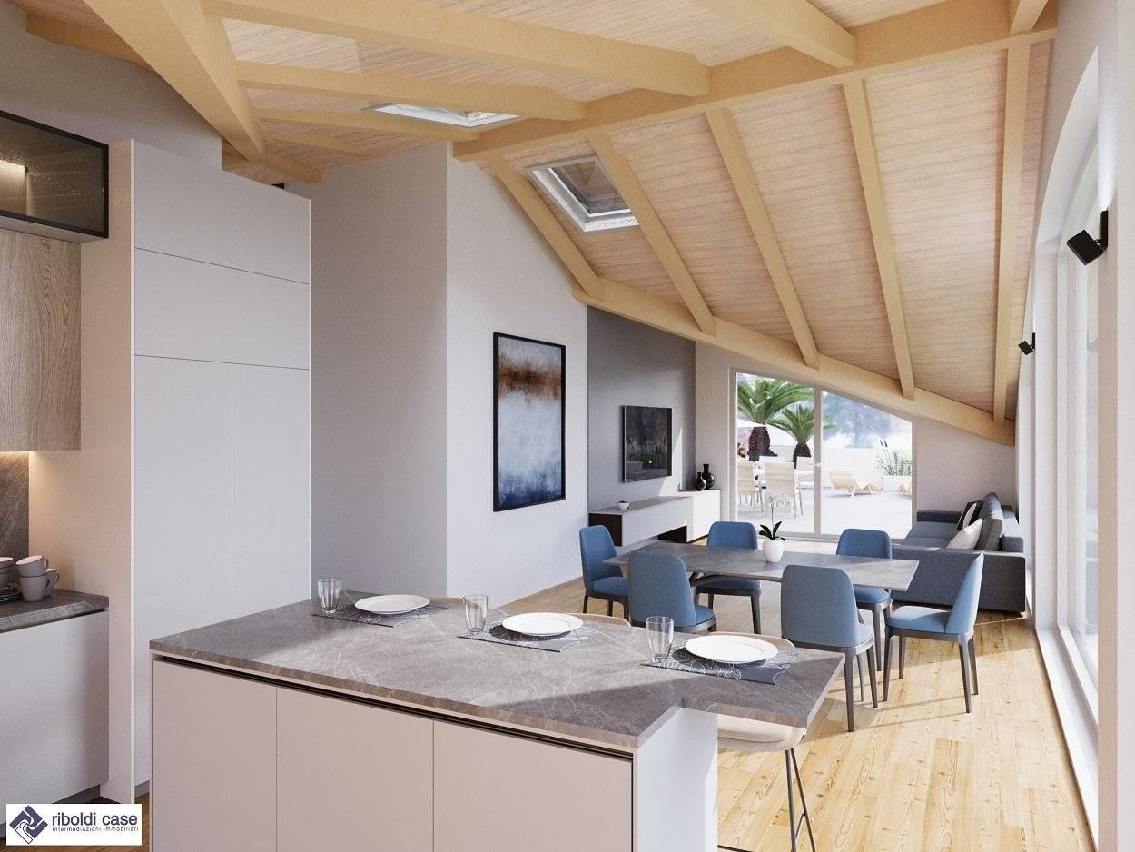 RESIDENCE ARMONIA In tranquilla zona residenziale ma al contempo comoda con le principali vie di comunicazione, le scuole, i supermercati e tutti i servizi, in ESCLUSIVO ed ELEGANTE progetto immobiliare composto da sole tre unità abitative, proponiamo in vendita all'ULTIMO PIANO uno splendido ed ampio ATTICO di TRE LOCALI di ca. mq 165 con ASCENSORE DIRETTO, tetto in legno lamellare e travi a vista, con TERRAZZO PANORAMICO di ca. mq 80. La soluzione è così composta: ingresso su grande e luminosa zona living con cucina a vista e imponenti vetrate all'americana, disimpegno, camera matrimoniale con BAGNO PRIVATO e DOPPIA CABINA ARMADIO, seconda camera da letto e secondo bagno. L'appartamento è caratterizzato da un design moderno con ampia scelta di personalizzazione con materiali di pregio; l'unità abitativa è realizzata in classe energetica A, per garantire massimo risparmio, comfort abitativo, privacy e attenzione all’ambiente. Riscaldamento a pavimento e climatizzazione in tutti i locali. CANTINA. Possibilità BOX SINGOLO, BOX DOPPIO e POSTO AUTO SCOPERTO. € 399.000 (Rif. GIUSSANO C.50 ATTICO P2) (altre proposte su www.riboldicase.it)