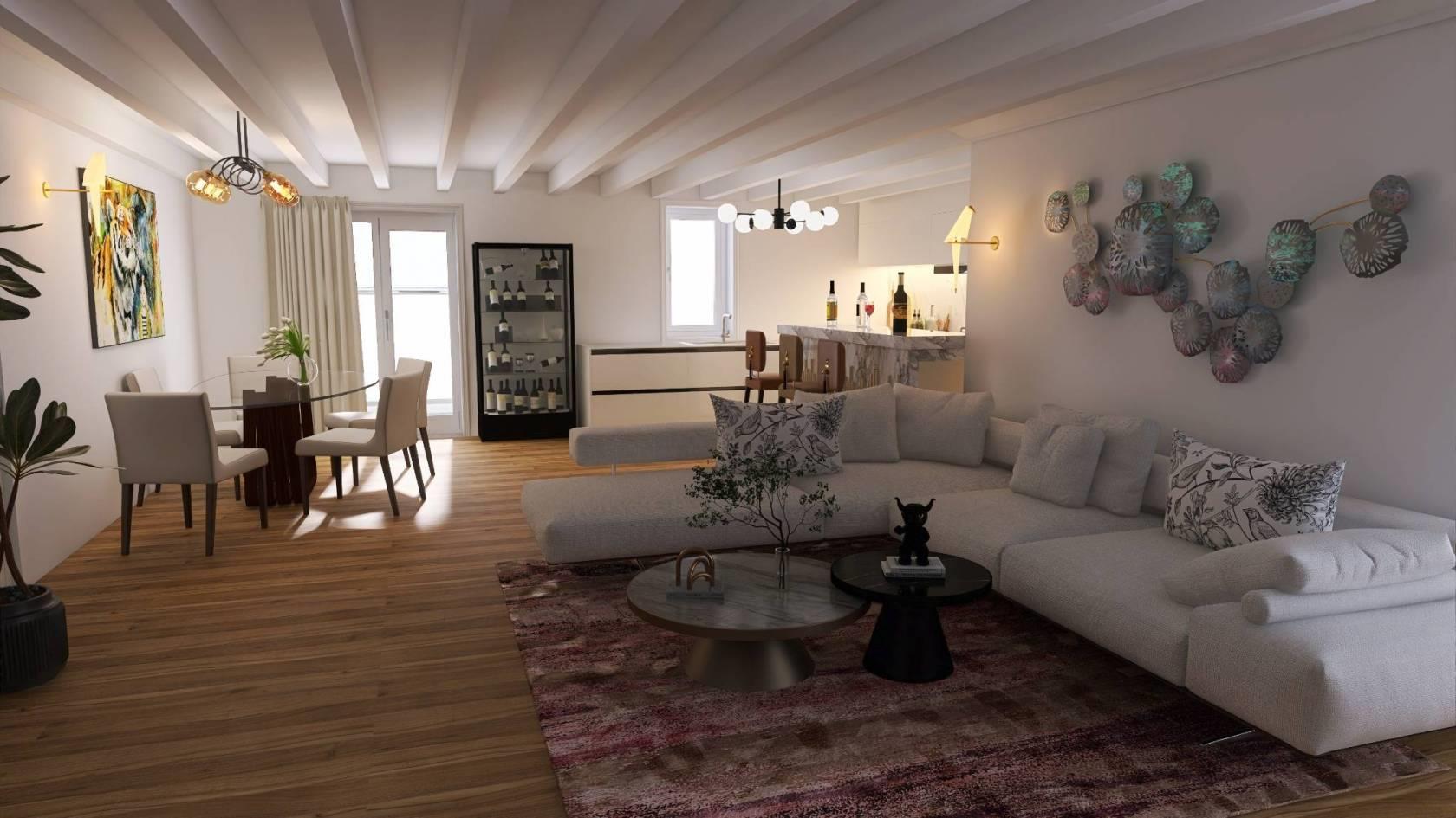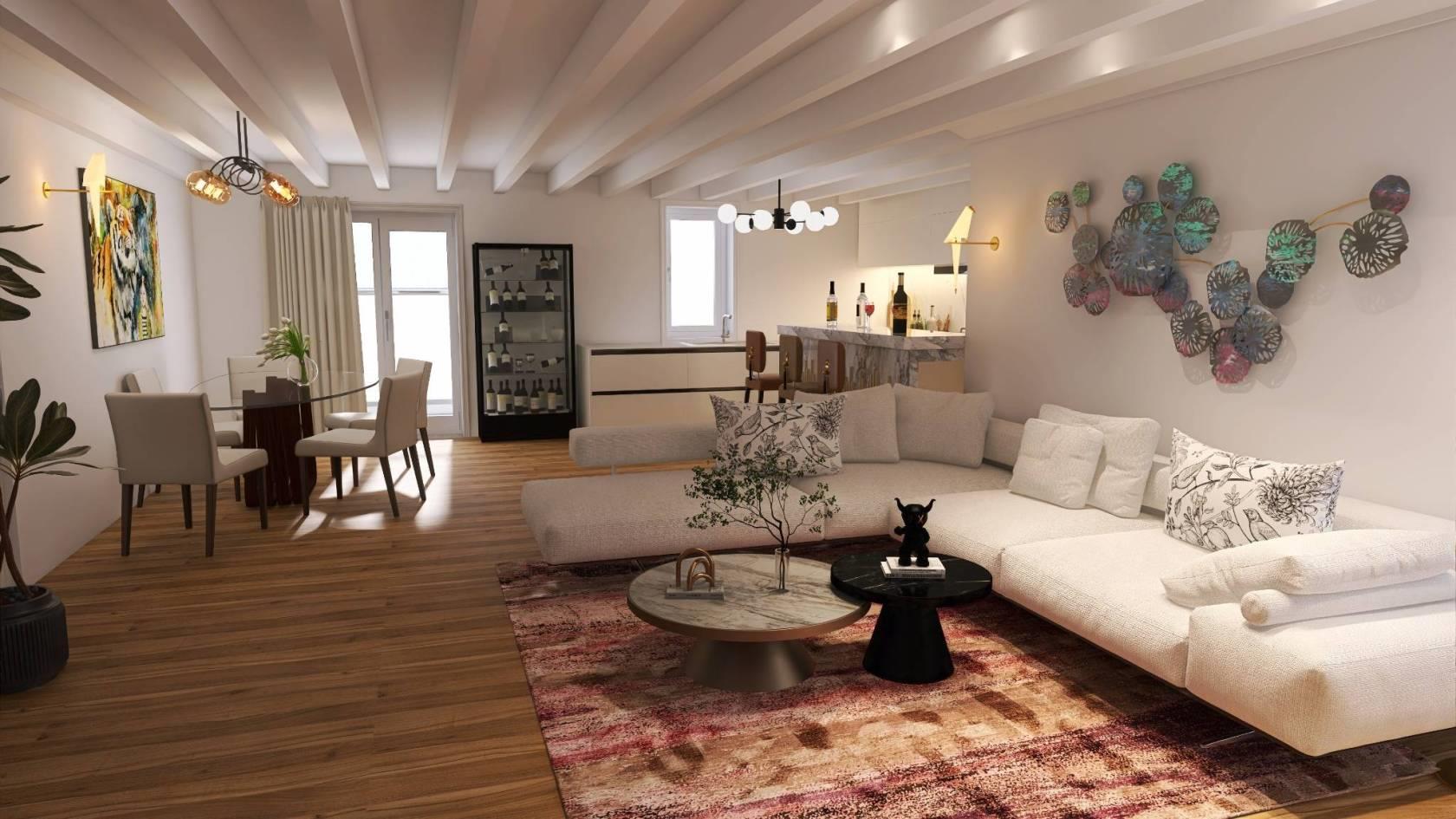 - Ampio Soggiorno di 58 mq: Un ambiente accogliente e luminoso, arricchito da travi a vista che donano un tocco di charme.