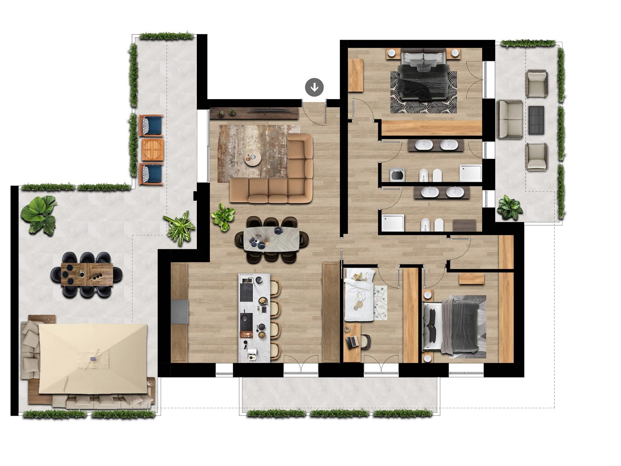 Immagina di trascorrere momenti indimenticabili con la tua famiglia e gli amici su un ampio terrazzo, perfetto per cene all'aperto, giochi per i bambini o semplicemente per rilassarti al sole. Uno spazio esclusivo che arricchisce ulteriormente la tua nuova casa!