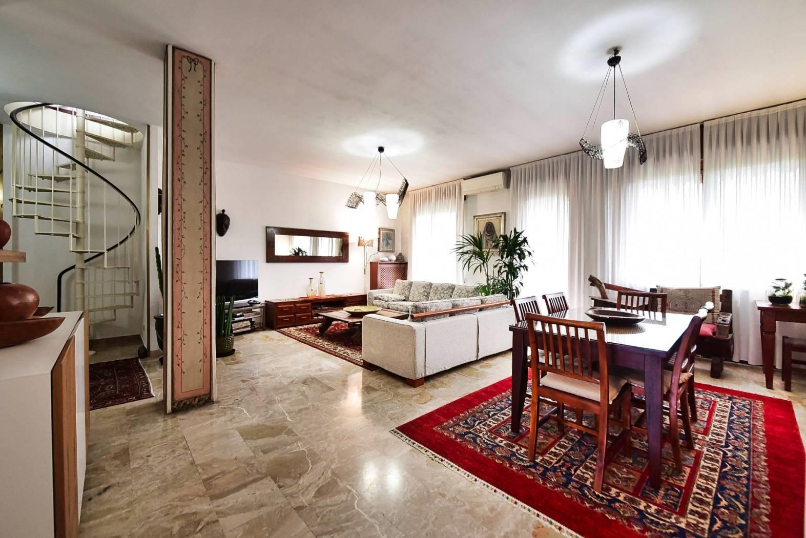 Al piano sesto troviamo un ampio salone doppio servito da due comodi balconi, cucina abitabile servita da un terzo balcone, due camere, doppi servizi e ripostiglio.