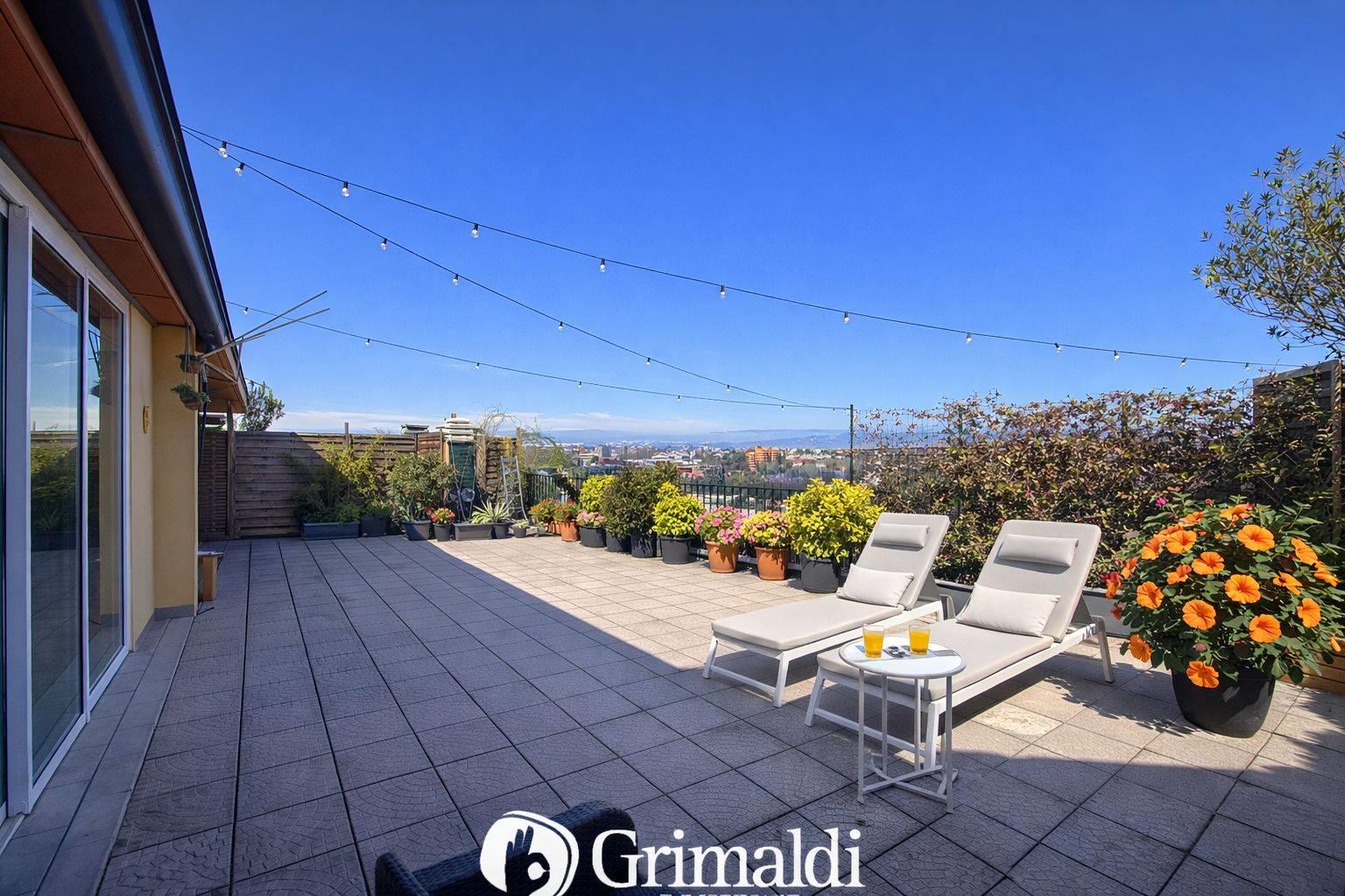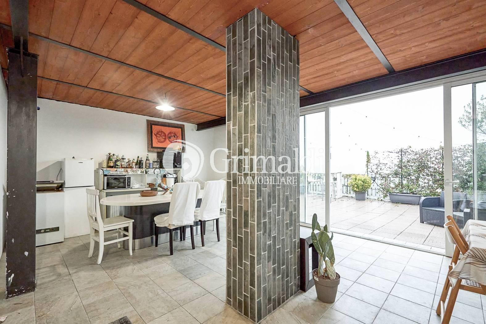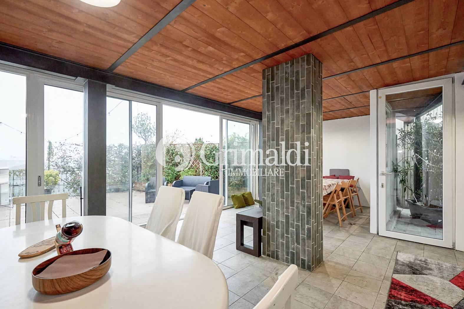 Una porzione del terrazzo è coperta e attrezzata, rendendolo fruibile durante tutto l’anno, anche nelle stagioni più fresche.