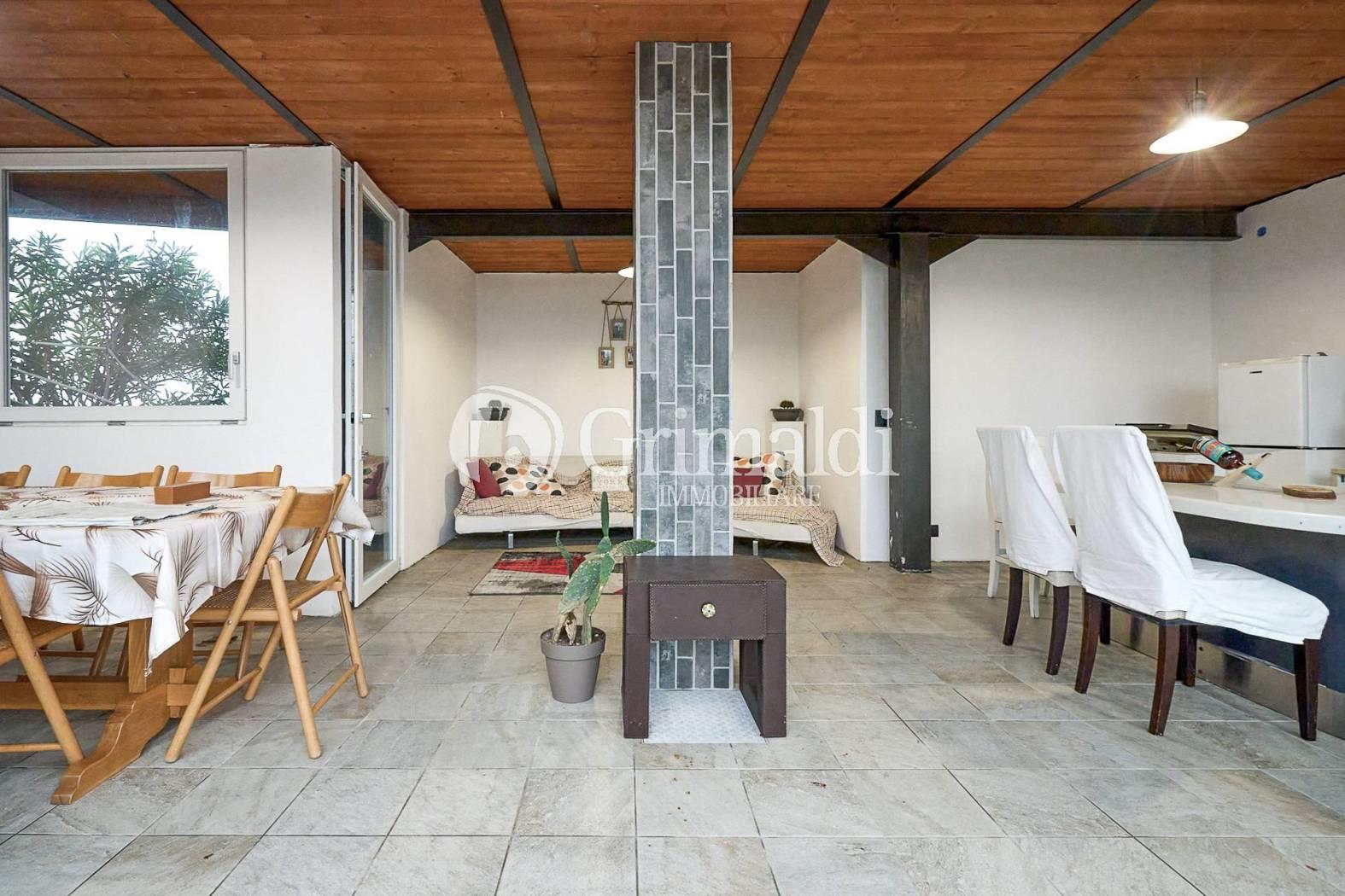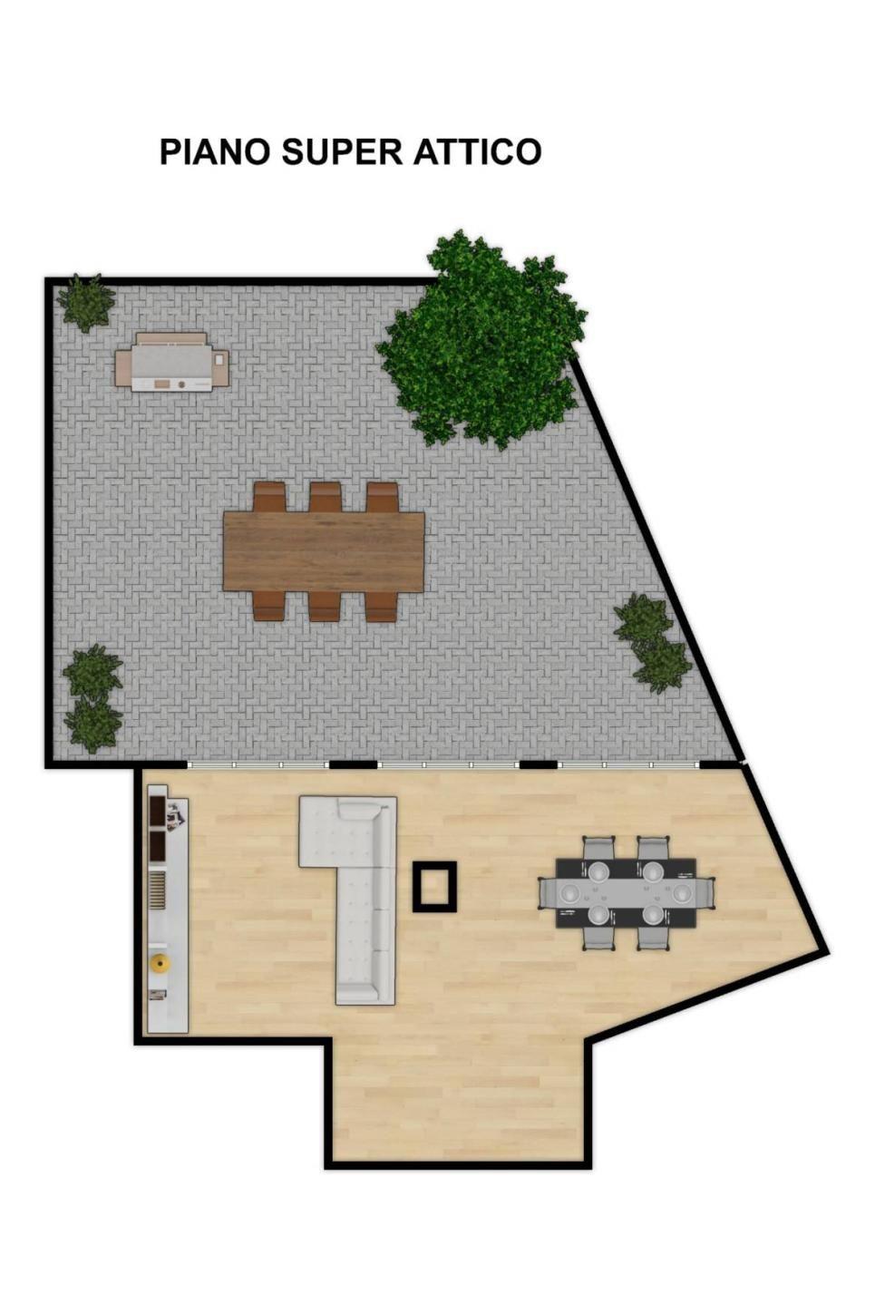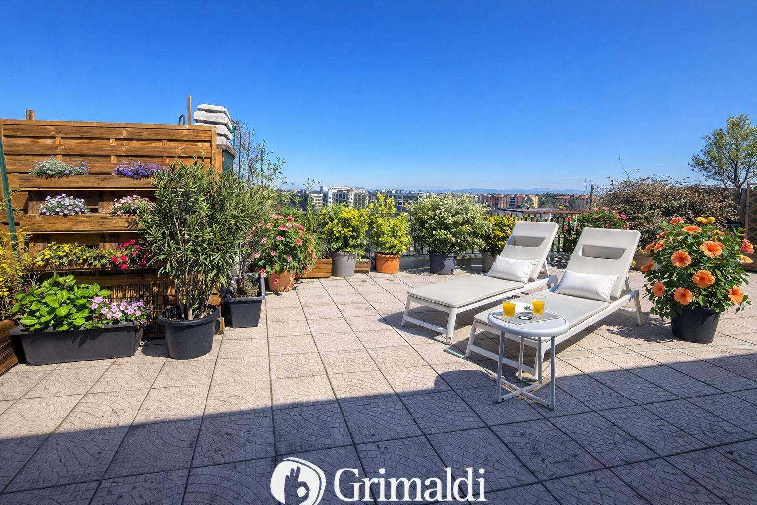 Una porzione del terrazzo è coperta e attrezzata, rendendolo fruibile durante tutto l’anno, anche nelle stagioni più fresche.