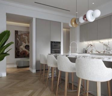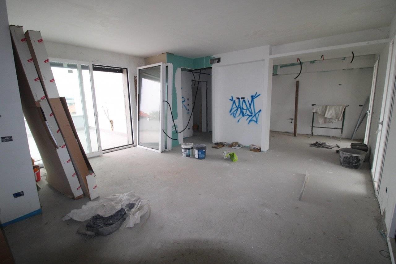 L'attico, all'ingresso è caratterizzato da ampi spazi luminosi grazie ai grandi serramenti scorrevoli che permettono alla luce naturale di filtrare all'interno, la disposizione degli ambienti è studiata nei minimi dettagli: un'area living spaziosa, comprensiva di cucina a vista con accesso diretto al terrazzo privato di circa 80 metri, dove vi è la predisposizione per una mini-piscina.
