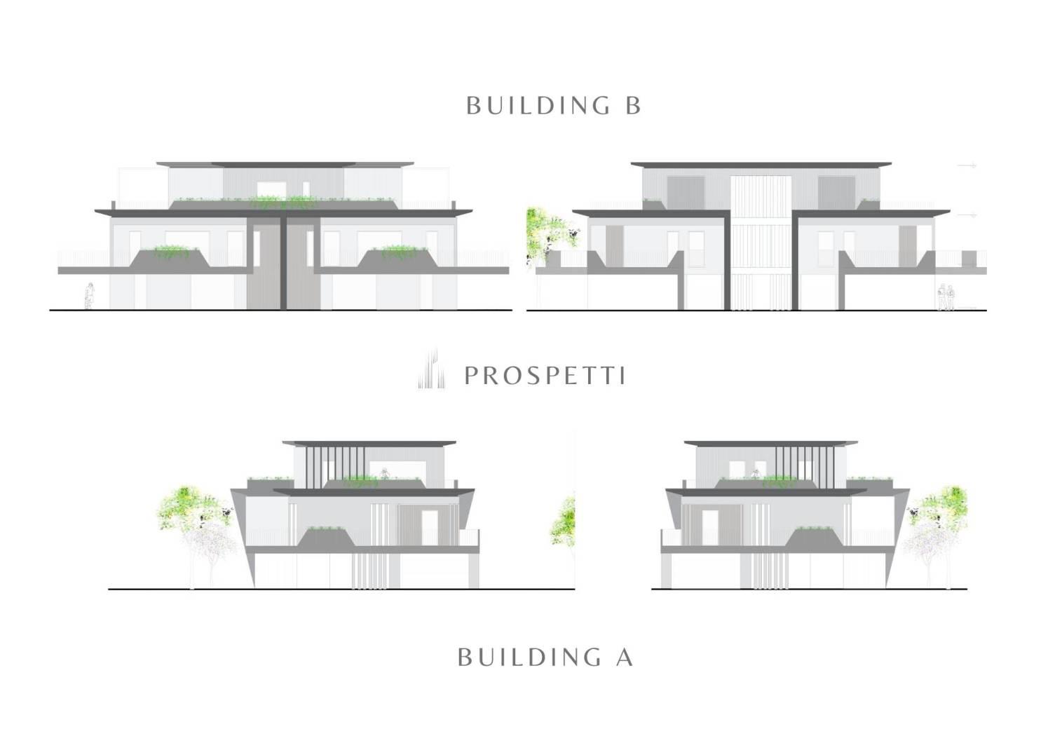 Il complesso prevede la realizzazione di 2 mini palazzine: il BUILDING A, composto da sette unità abitative, e il BUILDING B, da sole tre unità abitative.