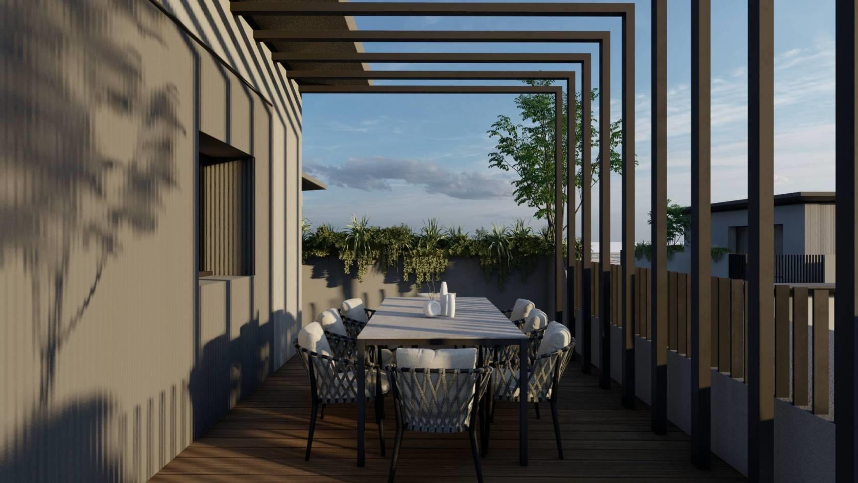 Le unità abitative al piano terra sono dotate di ampi giardini privati, spazio ormai irrinunciabile, vere e proprie oasi verdi di relax, mentre i piani superiori presentano profondi e coperti terrazzi, veri e propri locali all’aperto.
