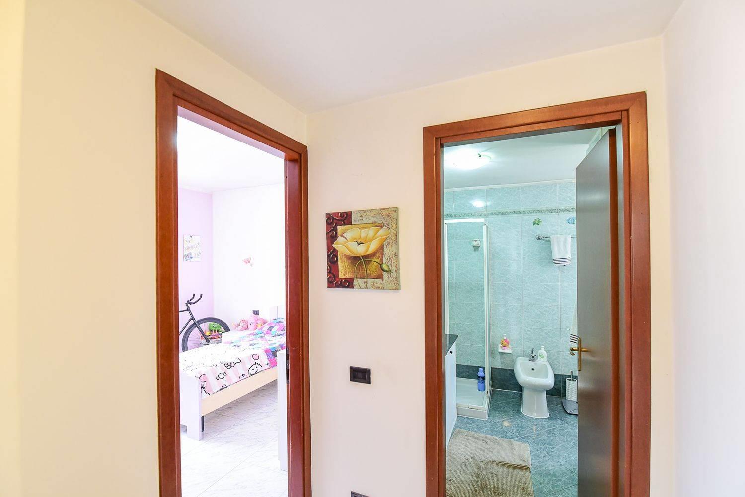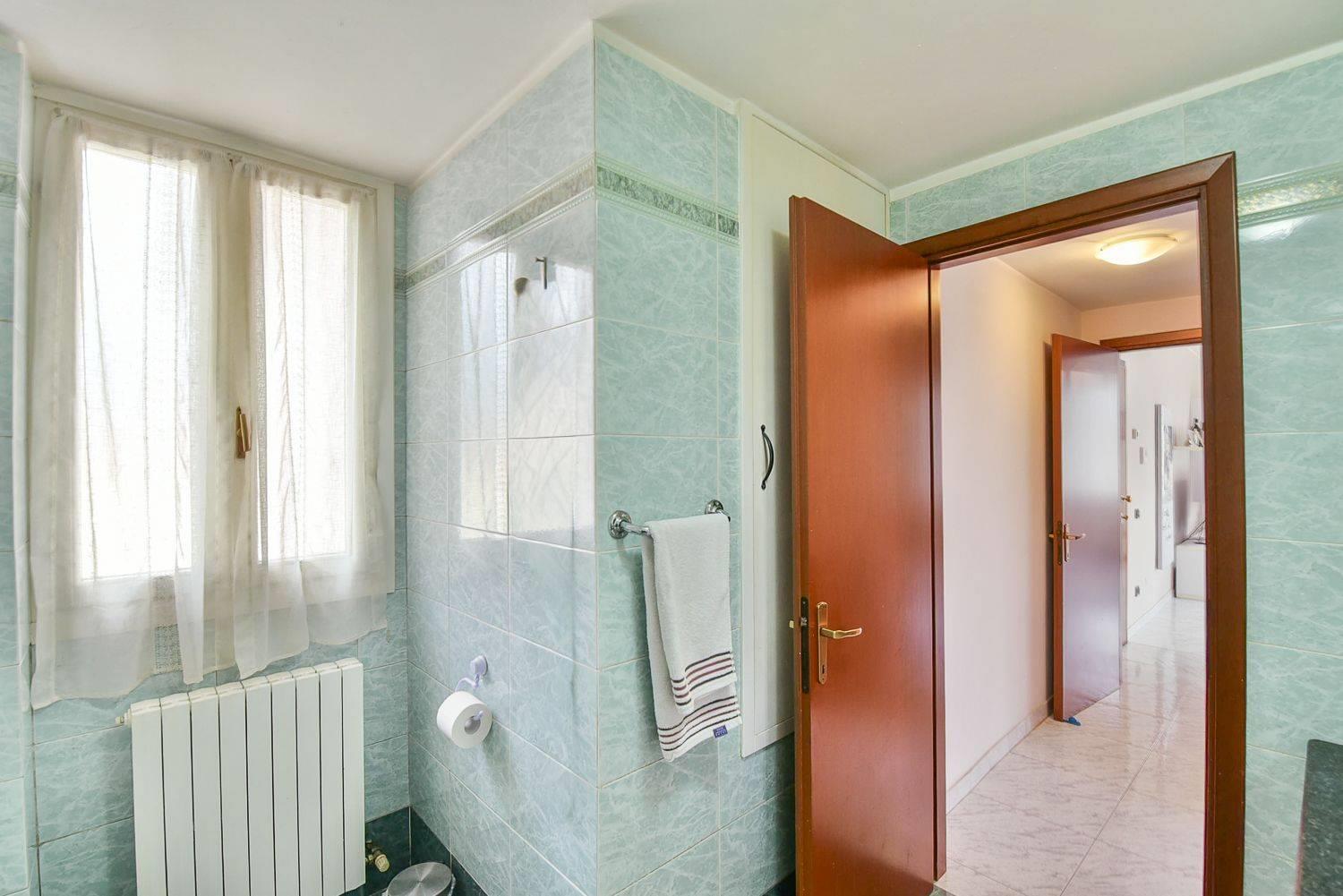 Sempre dal disimpegno si accede alla zona notte, dove troviamo la prima camera da letto e un bagno finestrato, particolarmente grande e arricchito da un ripostiglio interno molto pratico e sfruttabile.