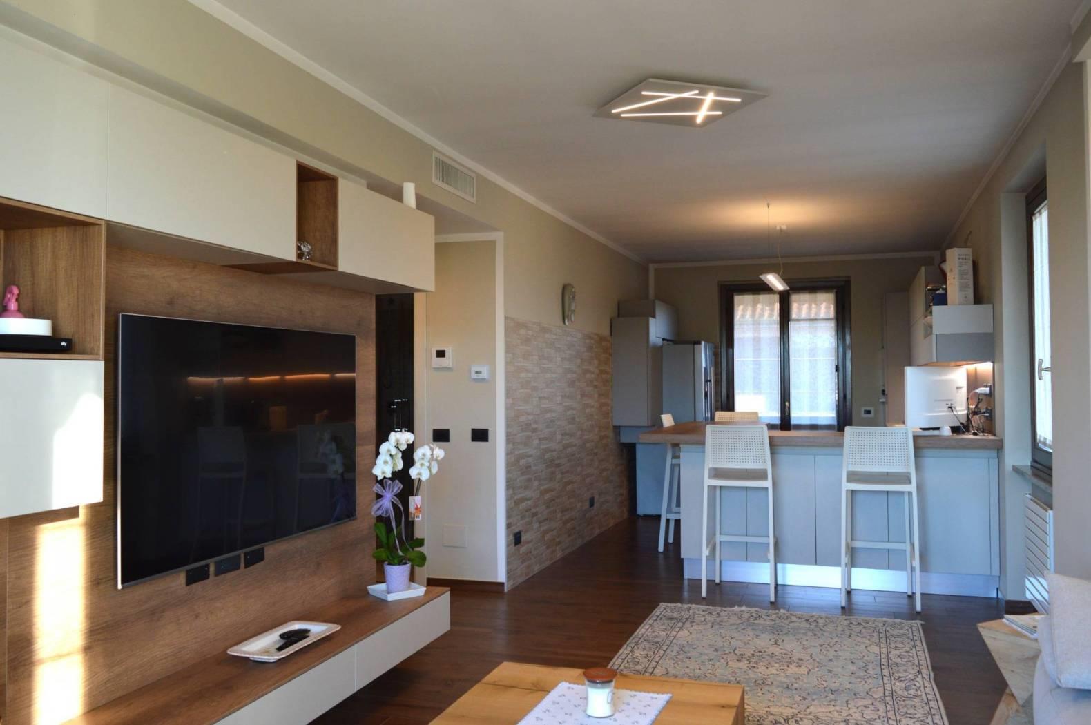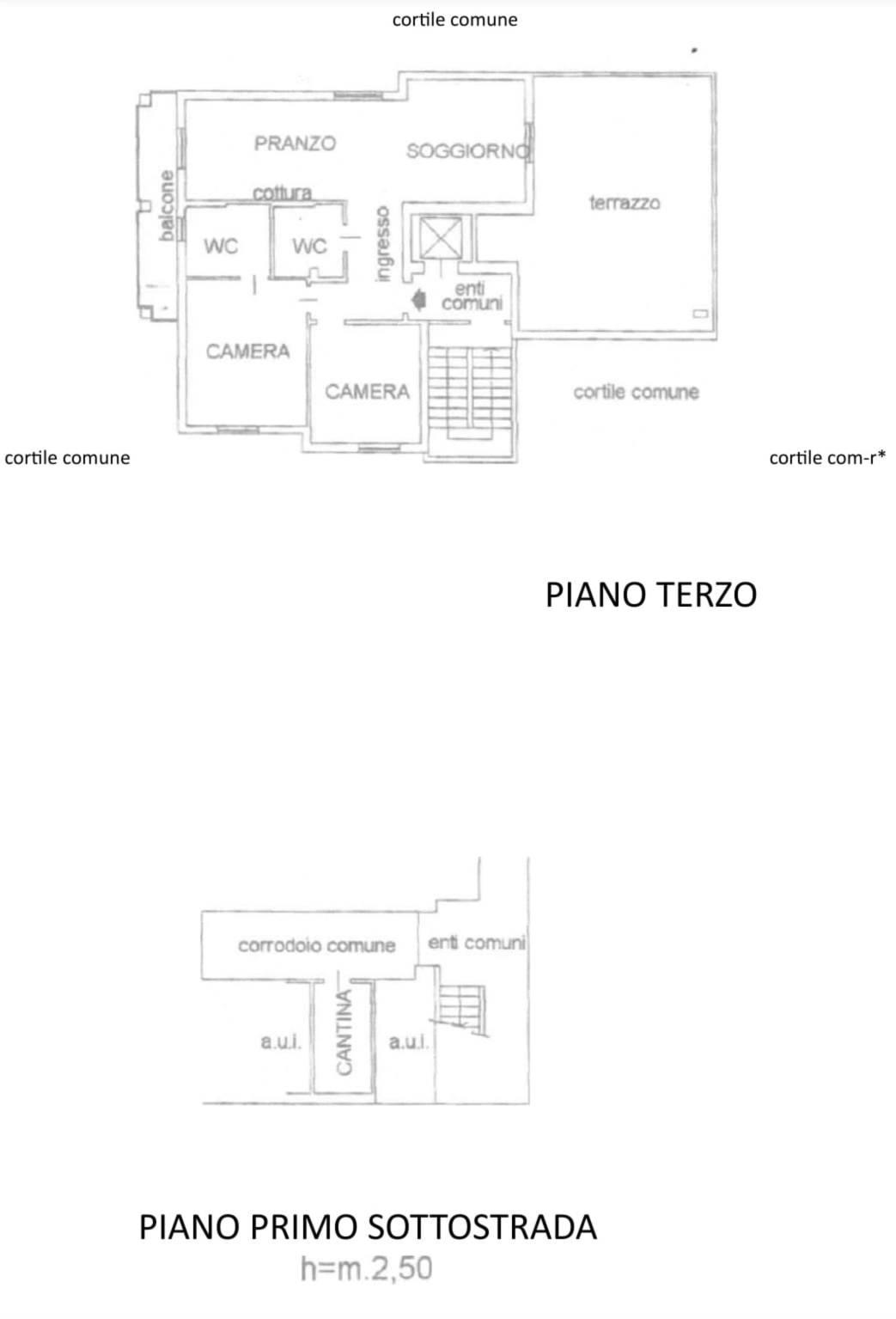 Abbinati all'appartamento abbiamo una cantina ed un box doppio (in lunghezza) nel piano seminterrato.