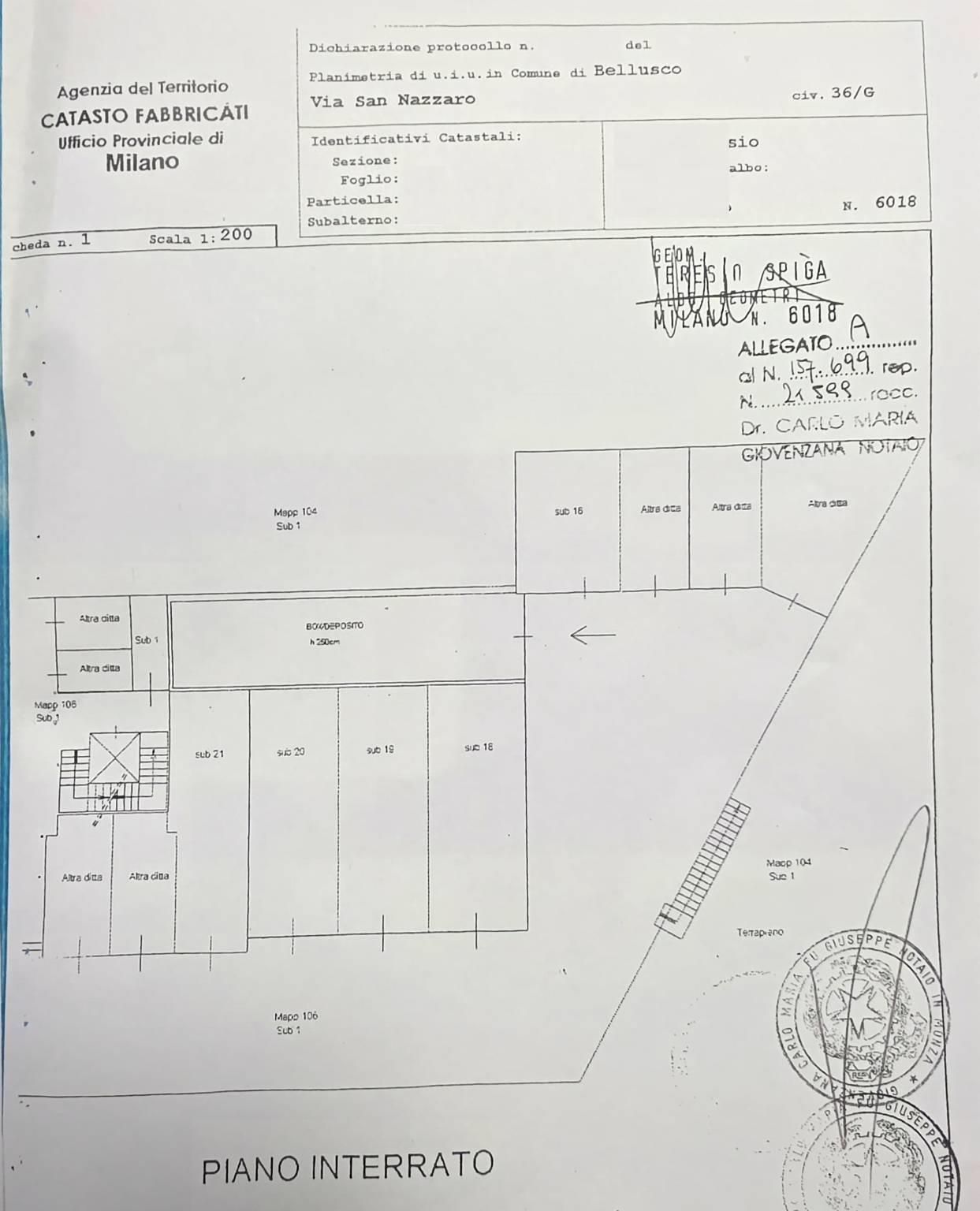 Bellusco, box di 60 mq, ottimo anche come deposito, ha un altezza di 2.50 mq, Il box è completo di punto luce e presa elettrica, con contakilowatt ed allarme.