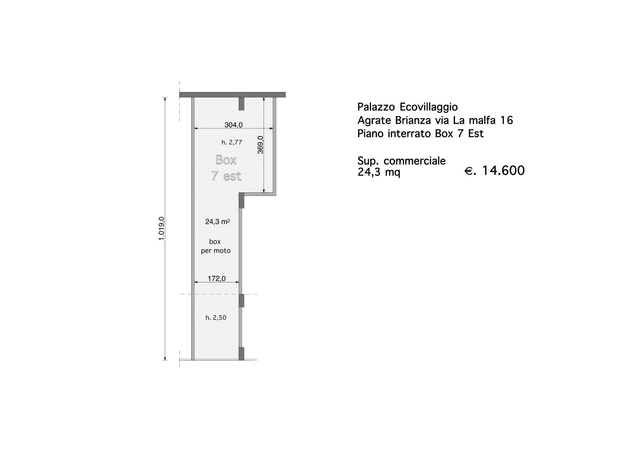 Vendesi box per moto (larghezza della porta d'ingresso 1,7 m) ad Agrate Brianza di 24,3 mq.