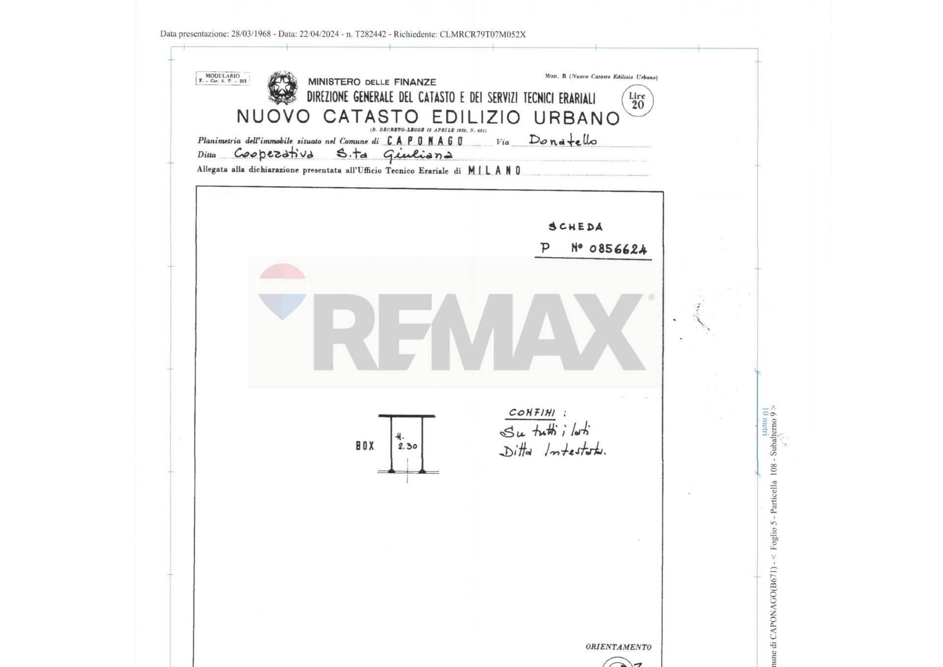 CAPONAGO - Situato all'interno di un condominio con spese condominiali molto contenute, solo 20 euro al mese, proponiamo box singolo con comodo accesso.