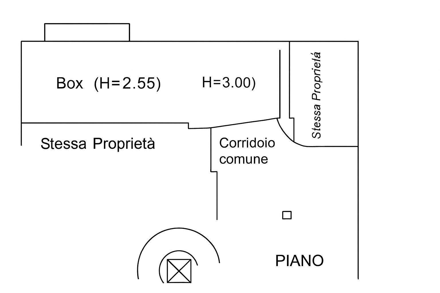 Dimensioni interne: lunghezza 12,40 - larghezza 3,6- altezza 2,55