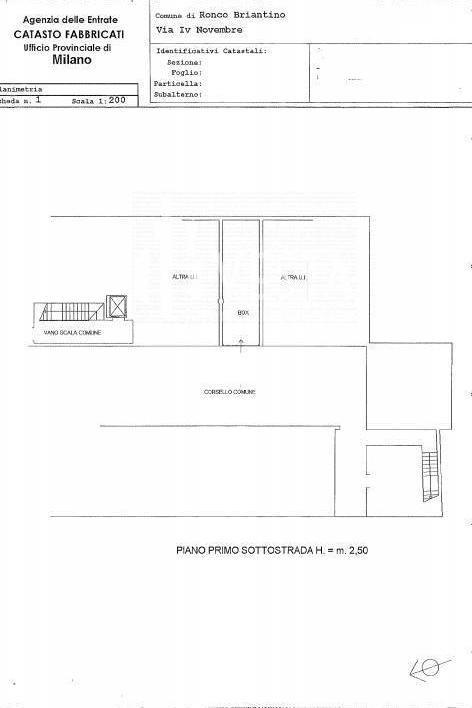 Ronco Briantino, in centro paese comodo con tutti i servizi, in piccola palazzina del 2021 Proponiamo in vendita Box doppio in lunghezza di mq 28 posto al piano interrato completo di impianto elettrico, imbiancato, piastrellato e con basculante manuale. Accesso da cancello elettrico e/o dal corsello box. Non soggetto a Certificazione Energetica Spese condominiali minime Potete contattarci per informazioni e/o per prenotare una visita per questo Box in vendita a Ronco Briantino, al numero 039/9284386