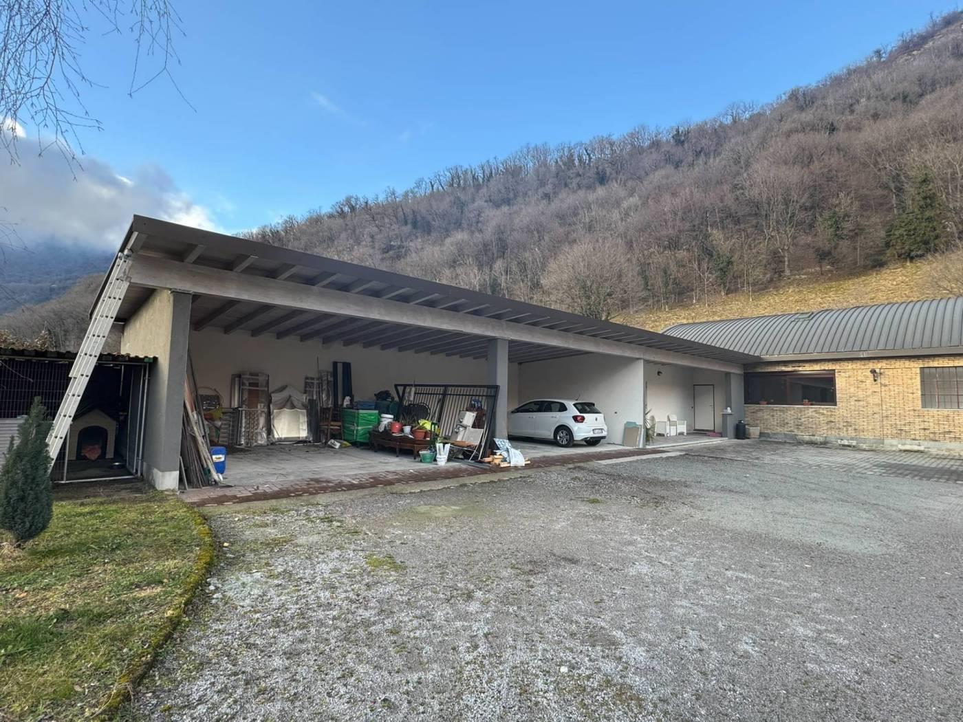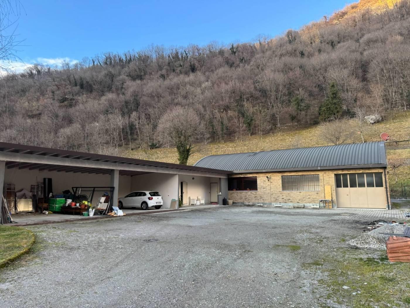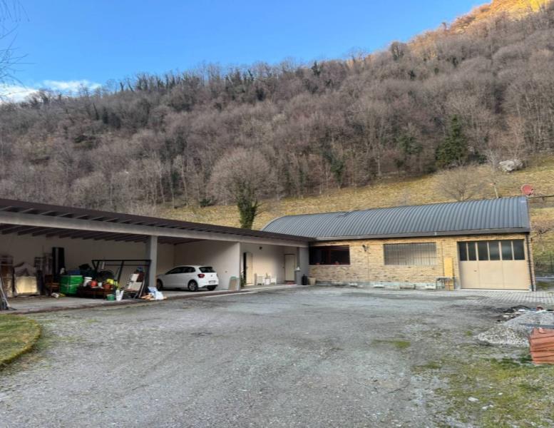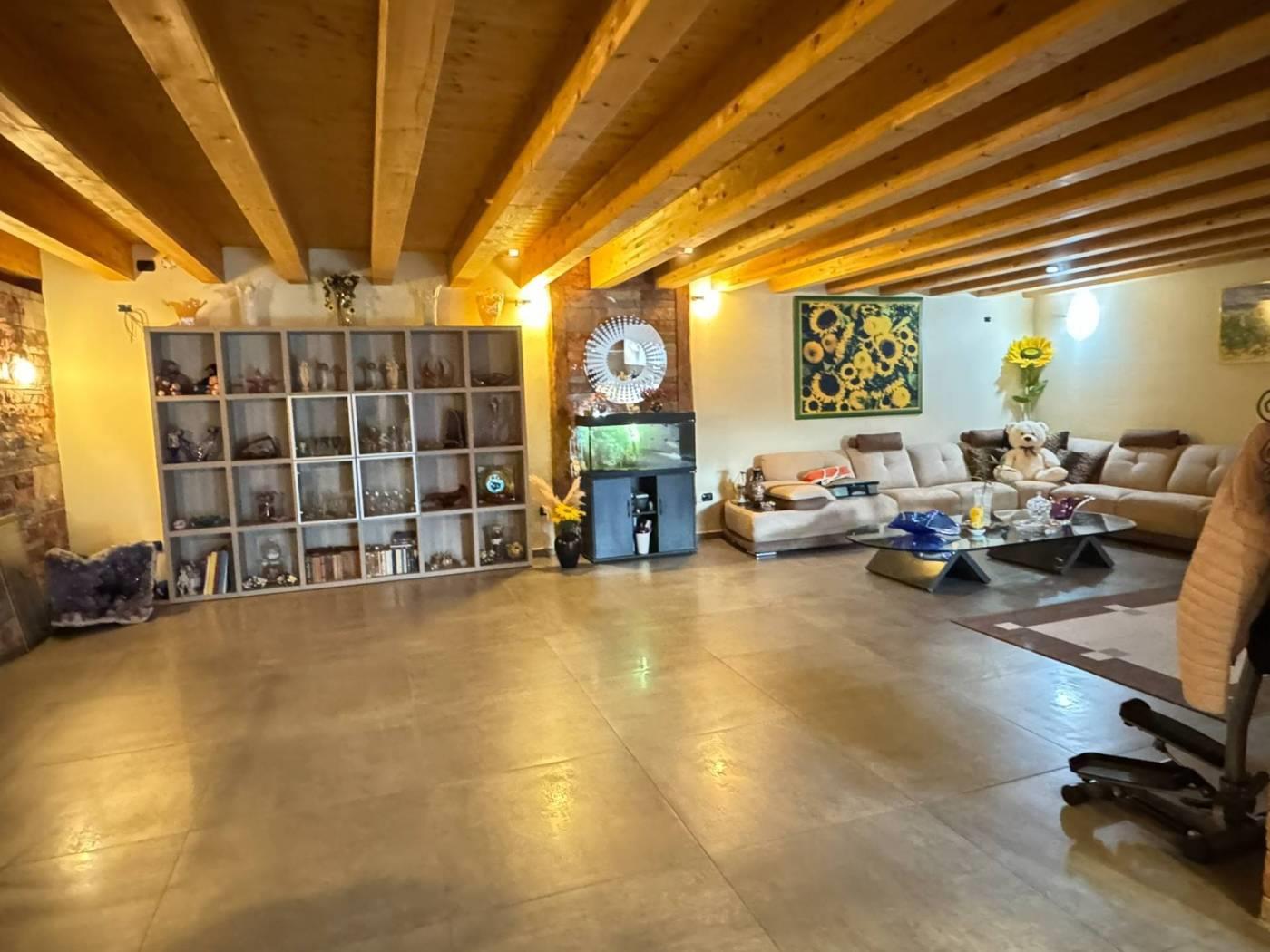 Un primo corpo di fabbrica si sviluppa su due livelli, uno terreno di mq. 160 completo di servizio ed uno soppalcato di mq. 100 collegati da comoda scala interna. La porzione è completamente finita, dotata di riscaldamento a pavimento e serramenti in alluminio con doppio vetro. La seconda porzione, di mq. 150, è dotata di pavimentazione in cemento, predisposizione di scarichi ed attacchi. Una comoda tettoia di mq. 74 in legno lamellare affaccia sul cortile/giardino ed è servita da servizio igienico-centrale termica. € 275.000,00