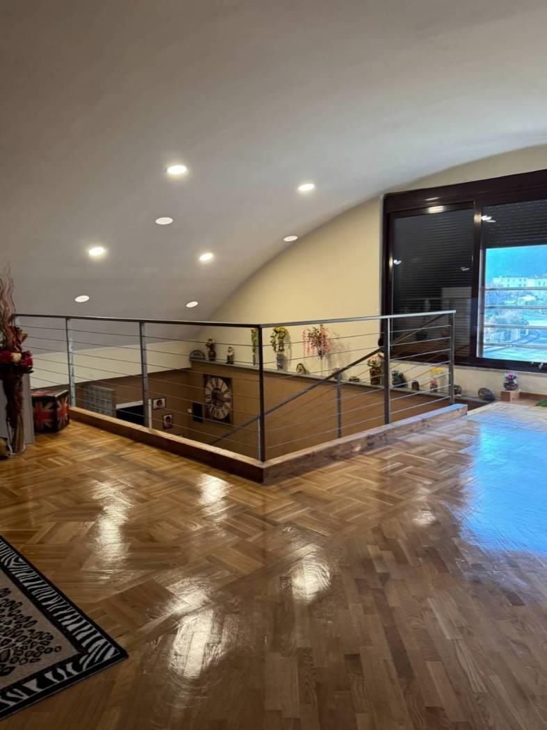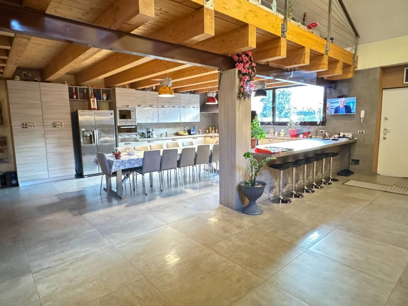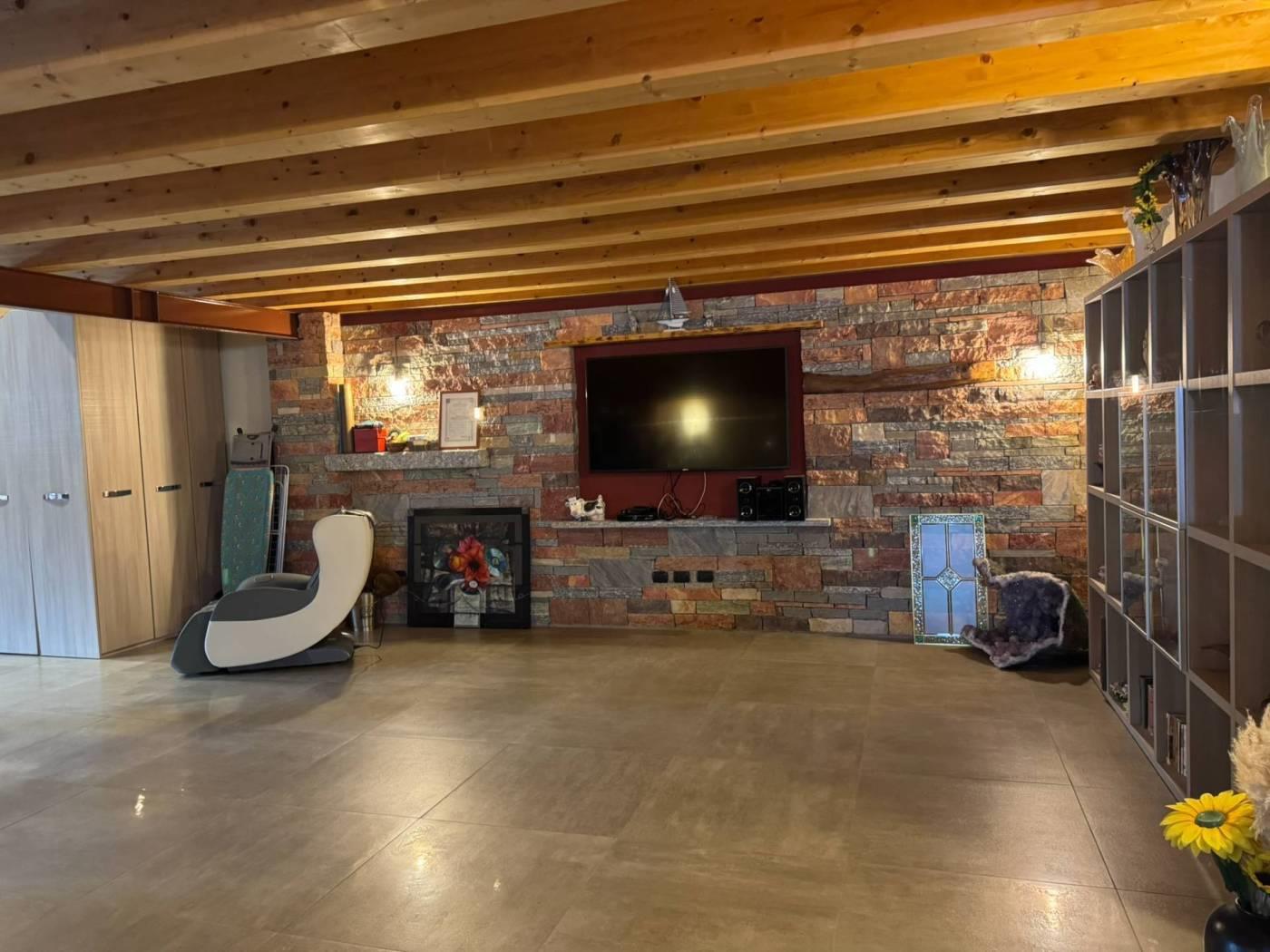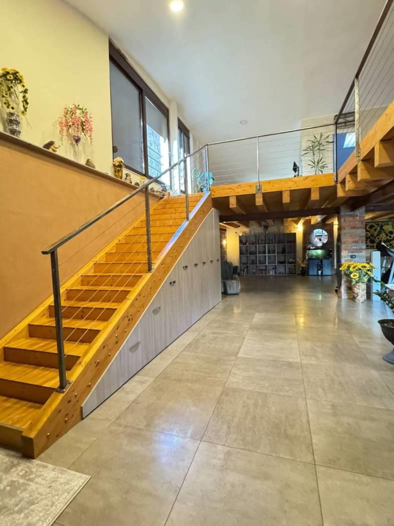 Un primo corpo di fabbrica si sviluppa su due livelli, uno terreno di mq. 160 completo di servizio ed uno soppalcato di mq. 100 collegati da comoda scala interna. La porzione è completamente finita, dotata di riscaldamento a pavimento e serramenti in alluminio con doppio vetro. La seconda porzione, di mq. 150, è dotata di pavimentazione in cemento, predisposizione di scarichi ed attacchi. Una comoda tettoia di mq. 74 in legno lamellare affaccia sul cortile/giardino ed è servita da servizio igienico-centrale termica. € 275.000,00