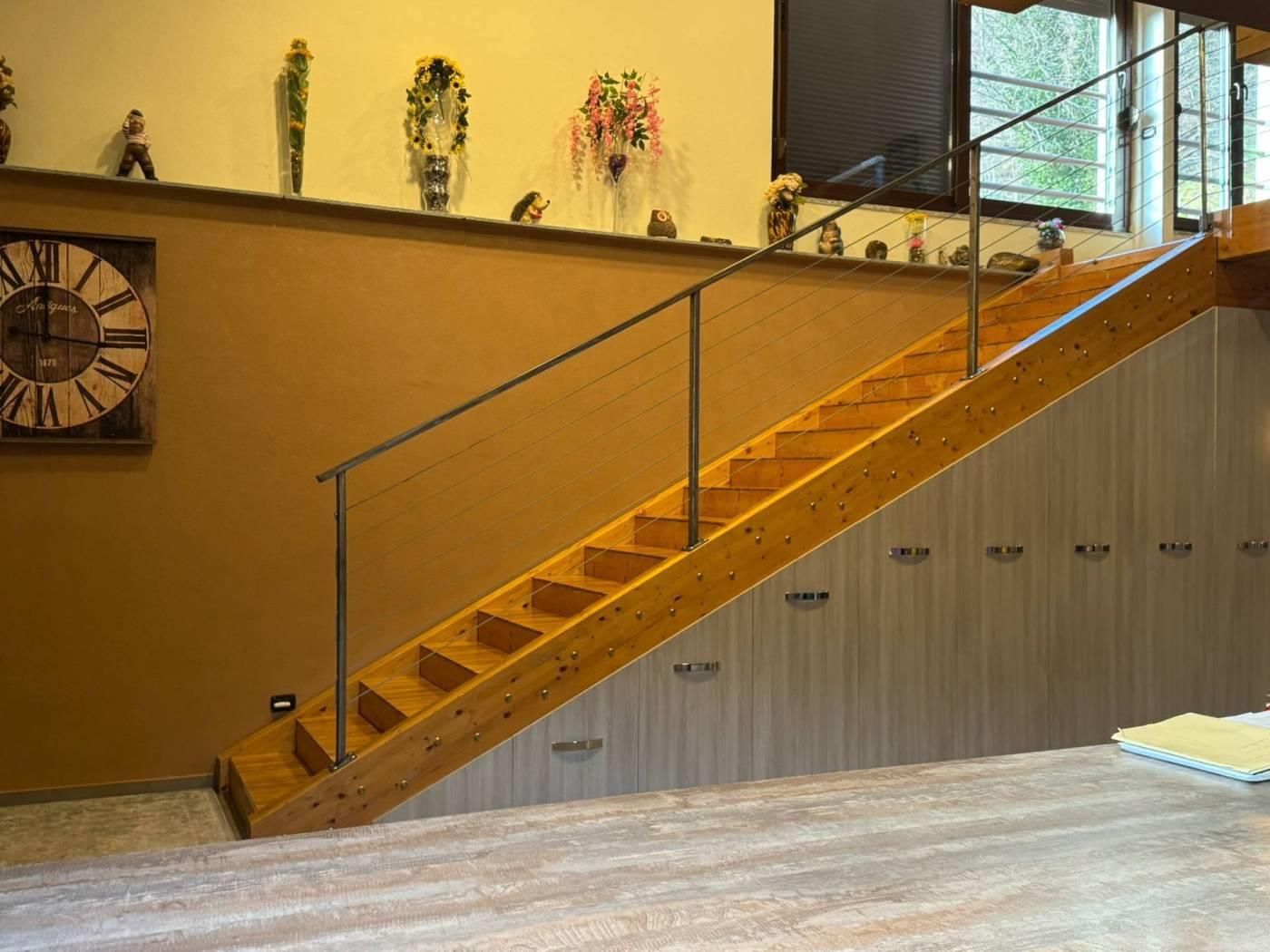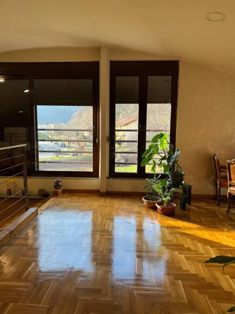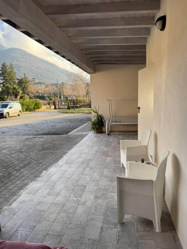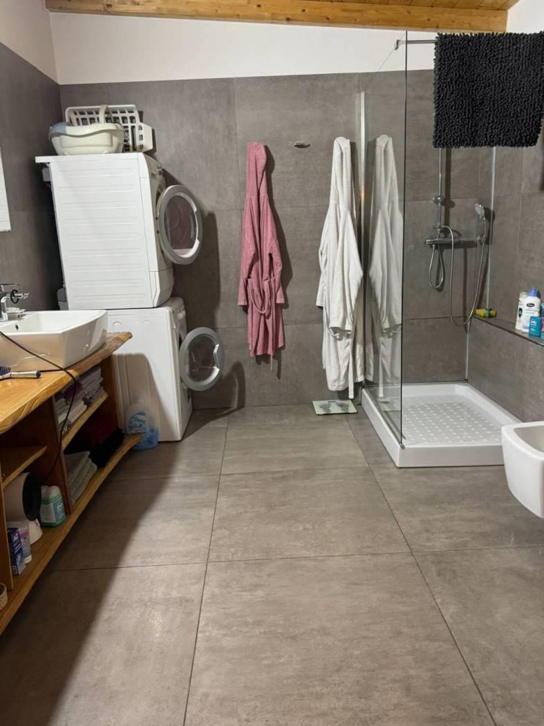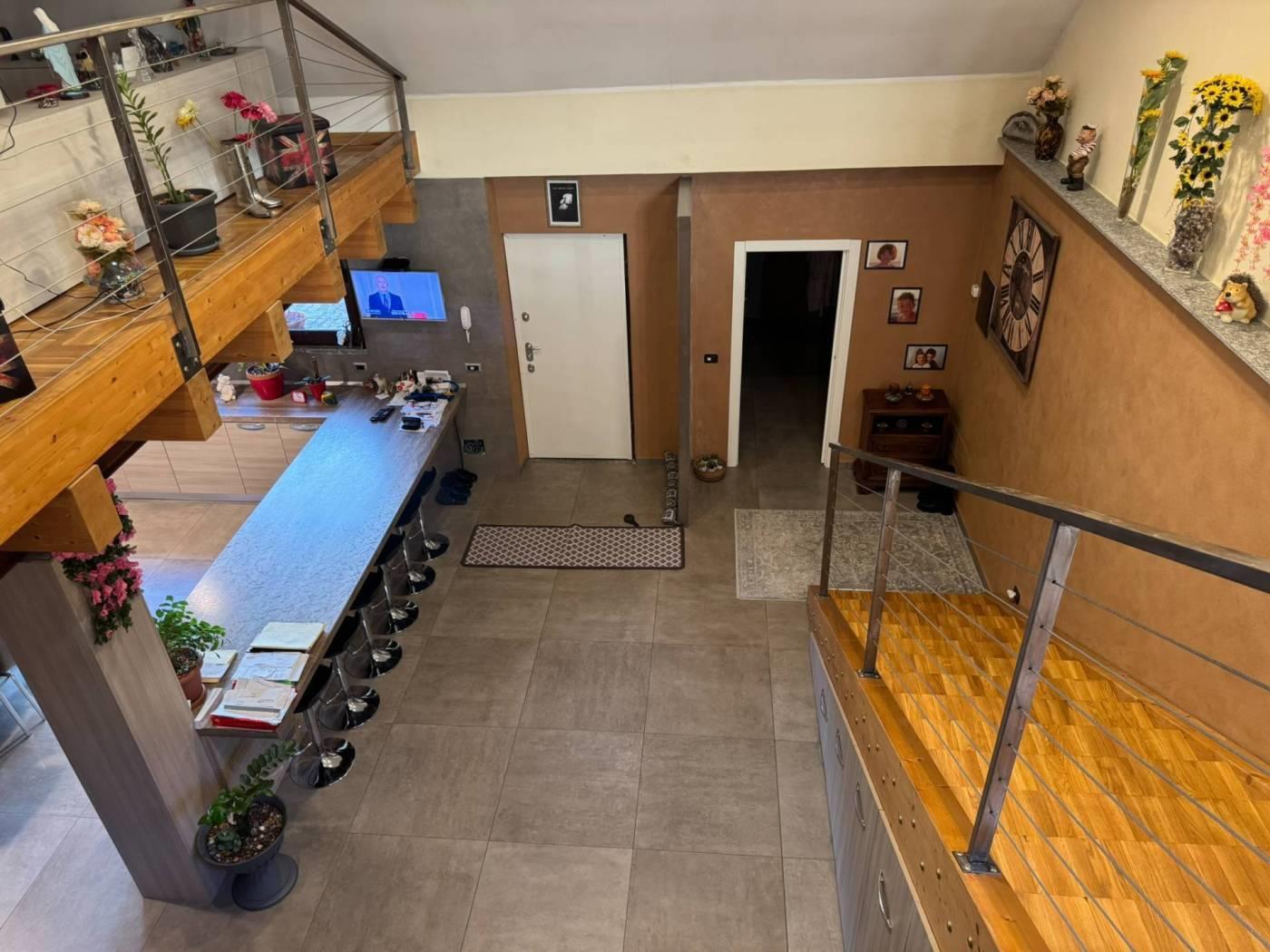 Un primo corpo di fabbrica si sviluppa su due livelli, uno terreno di mq. 160 completo di servizio ed uno soppalcato di mq. 100 collegati da comoda scala interna. La porzione è completamente finita, dotata di riscaldamento a pavimento e serramenti in alluminio con doppio vetro. La seconda porzione, di mq. 150, è dotata di pavimentazione in cemento, predisposizione di scarichi ed attacchi. Una comoda tettoia di mq. 74 in legno lamellare affaccia sul cortile/giardino ed è servita da servizio igienico-centrale termica. € 275.000,00