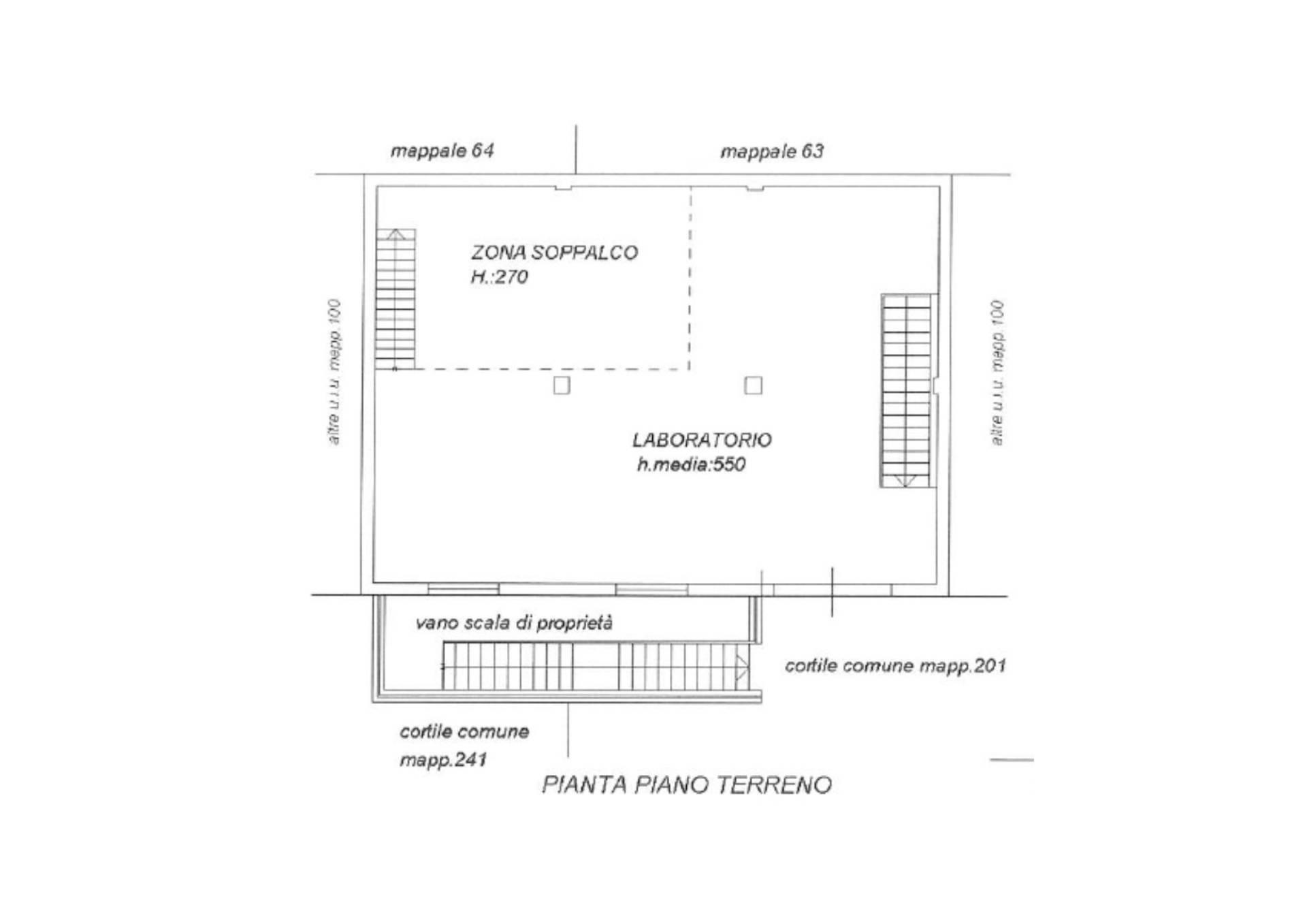 Laboratorio di ampia metratura, disposto su più livelli più soppalco, ideale per attività produttive, artigianali o di deposito in posizione comoda e ben collegata.