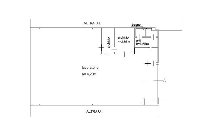 L'immobile al suo interno è composto da un locale open space senza pilastri ad uso laboratorio, archivio oltre a doppi servizi.