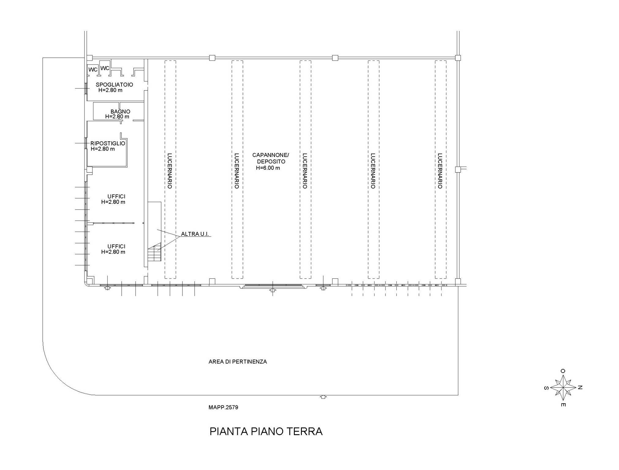 Area produttiva al piano terra di circa 570 mq, con altezza interna di 6,85 m, completamente priva di pilastri, caratteristica che garantisce massima flessibilità operativa e facilità nella gestione delle lavorazioni e dei flussi logistici. Il capannone è dotato di carroponte, impianto di aria compressa, impianto di illuminazione, riscaldamento tramite robur e ampio portone industriale con altezza di 5,30 m, ideale per il transito di mezzi e per le operazioni di carico e scarico. Inoltre un locale con spogliatoi completi di armadietti, docce e sanitari è direttamente collegato all’area produttiva.