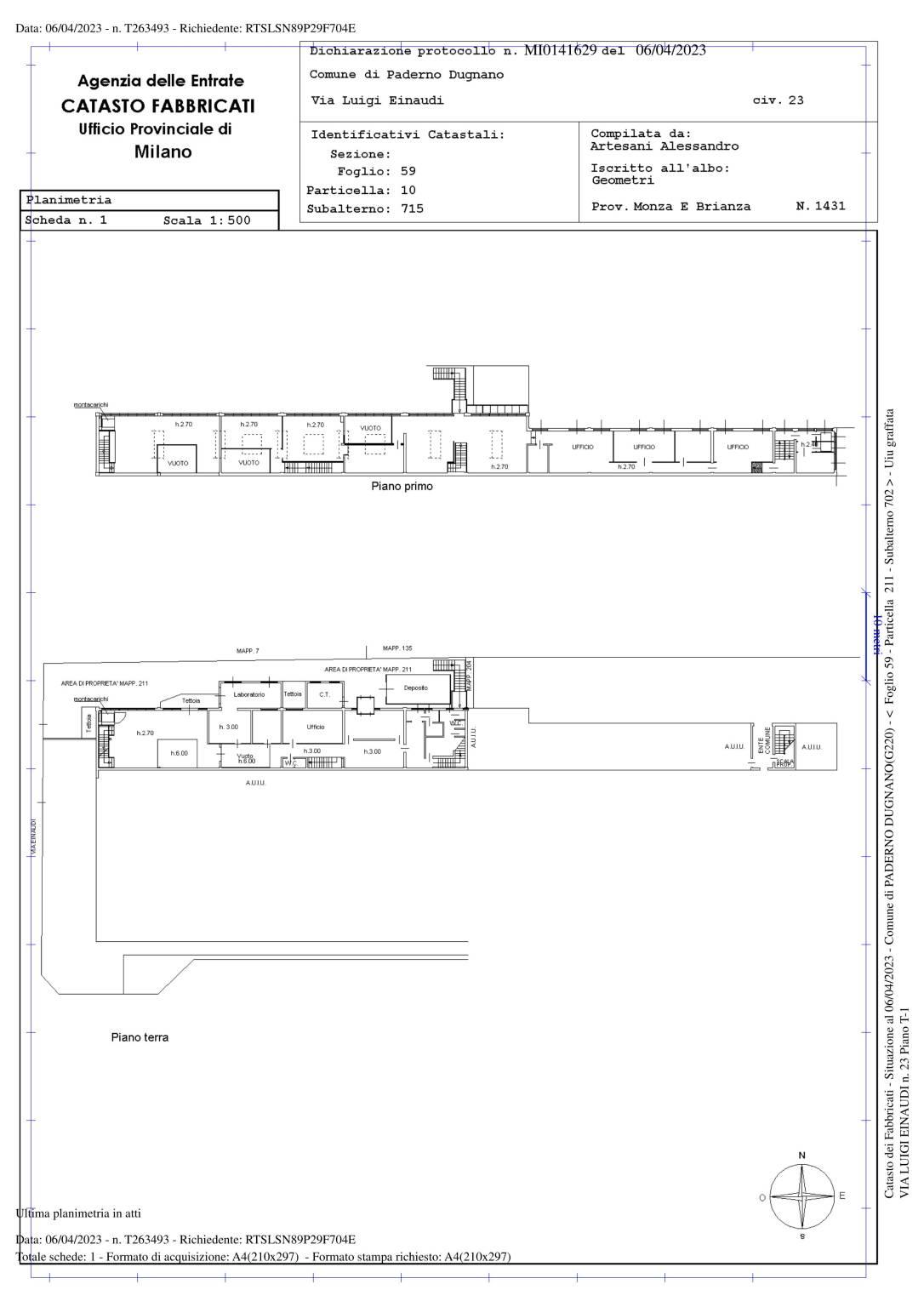 - Piano Terra: area cortiliva, magazzino e laboratori