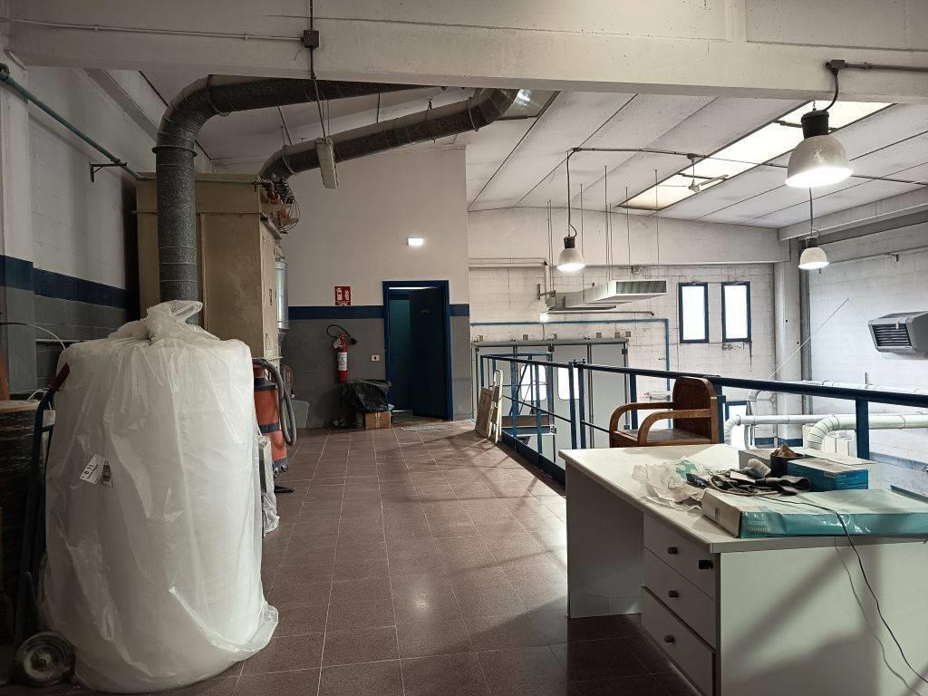 Proponiamo in esclusiva capannone di mq 450, principale destinazione d’uso laboratorio, magazzini e locali di servizio, con un secondo livello dove sono organizzati gli uffici e bagno riservato, ed annesso cortile di pertinenza di mq 850.