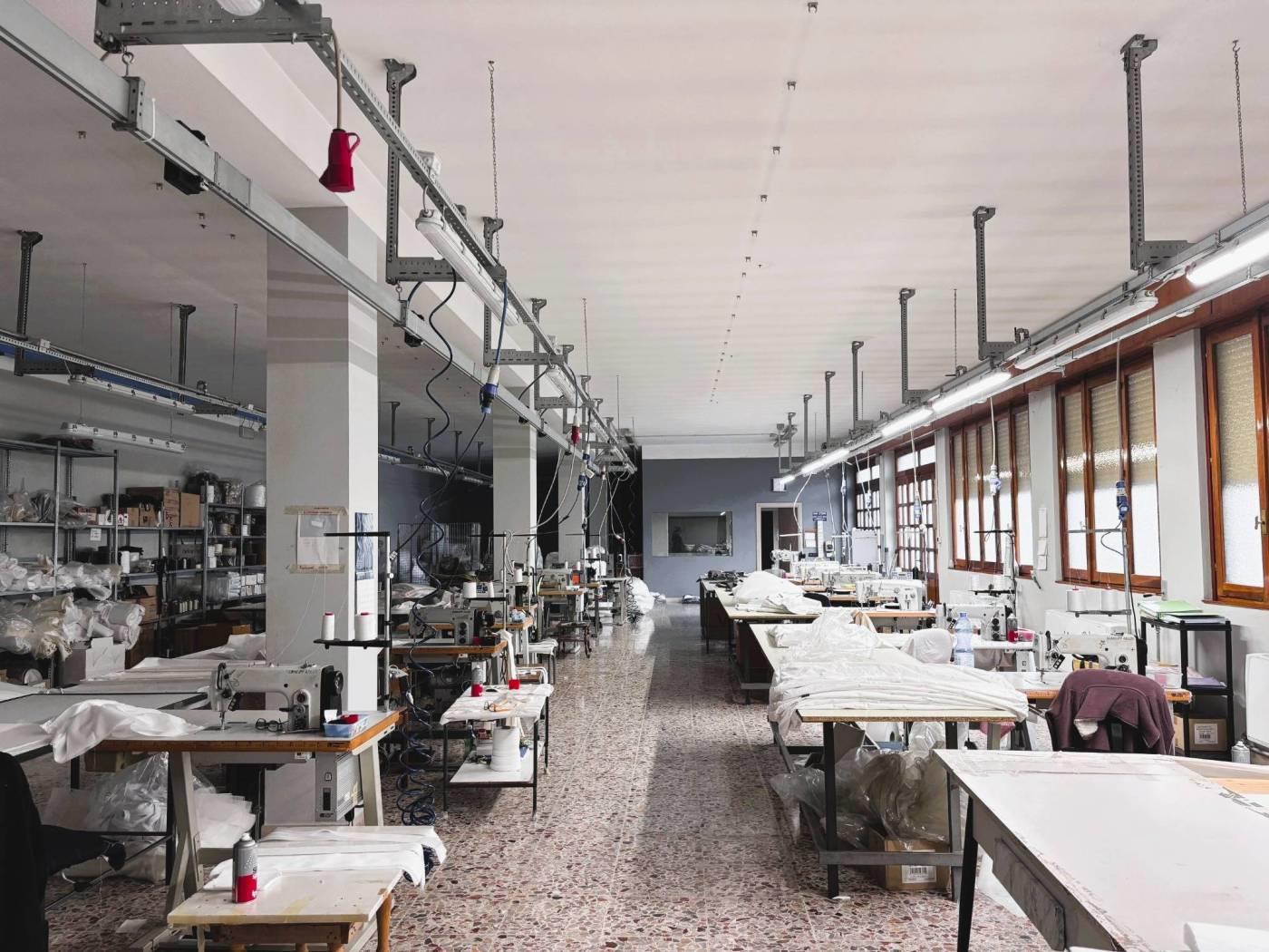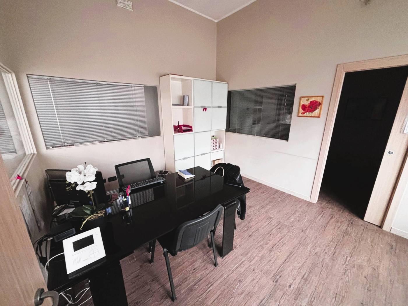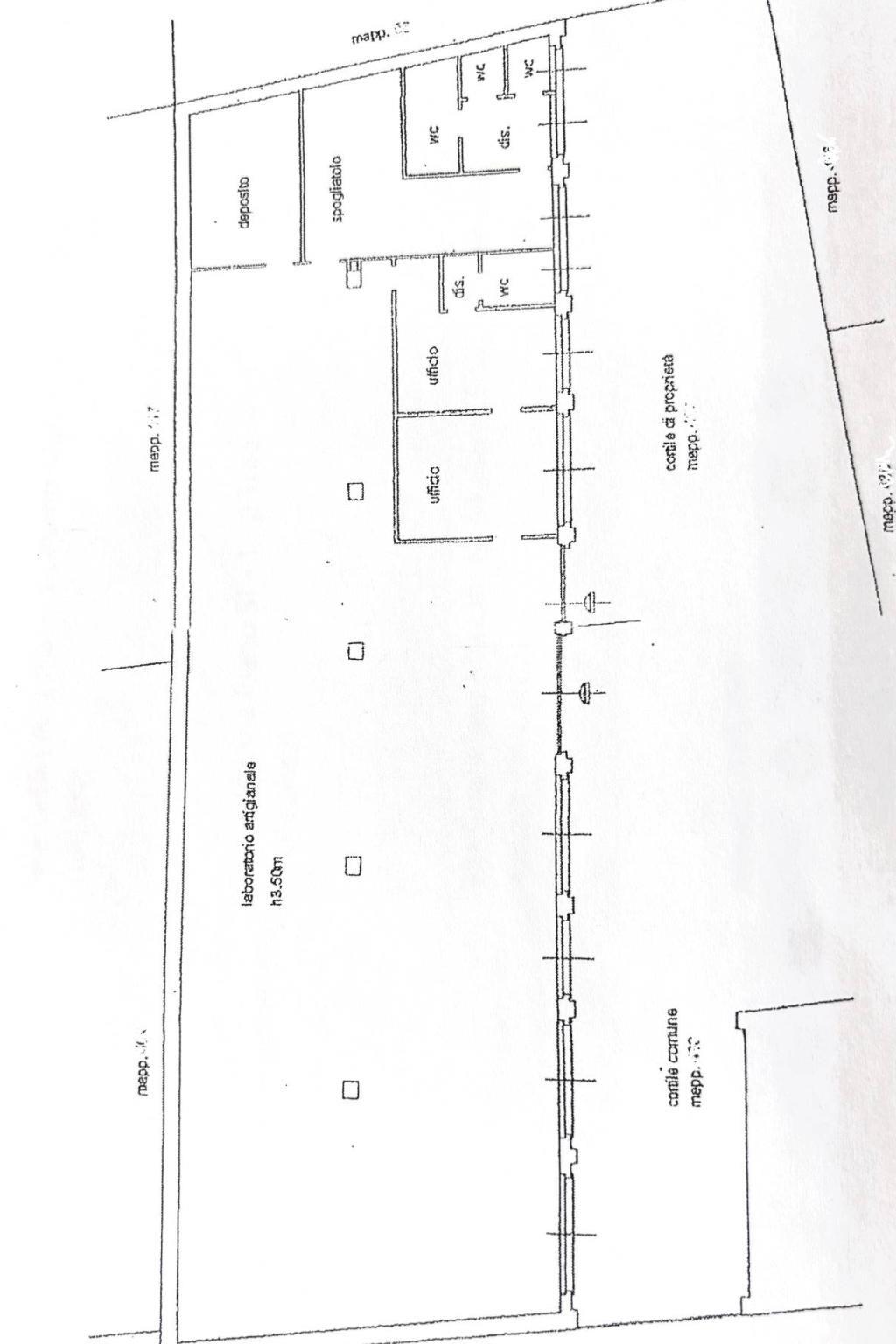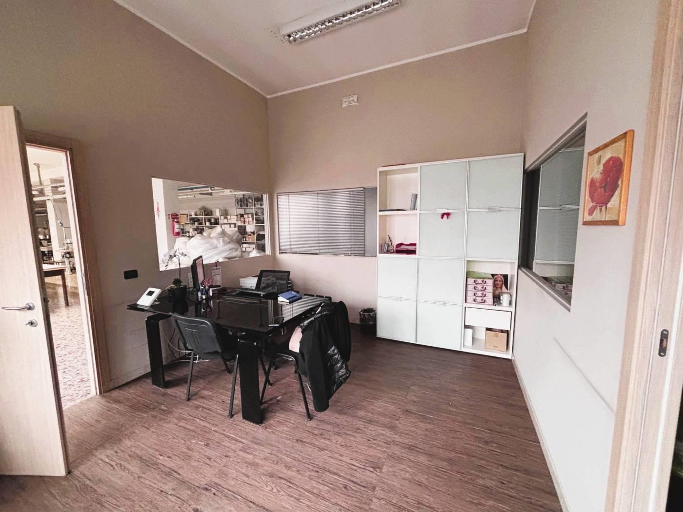 L' immobile è così composto: zona open-space dedicata alla produzione e due uffici con bagno dedicato. Il locale spogliatoio/mensa è completo di due bagni di cui uno a norma disabili. Ripostiglio.