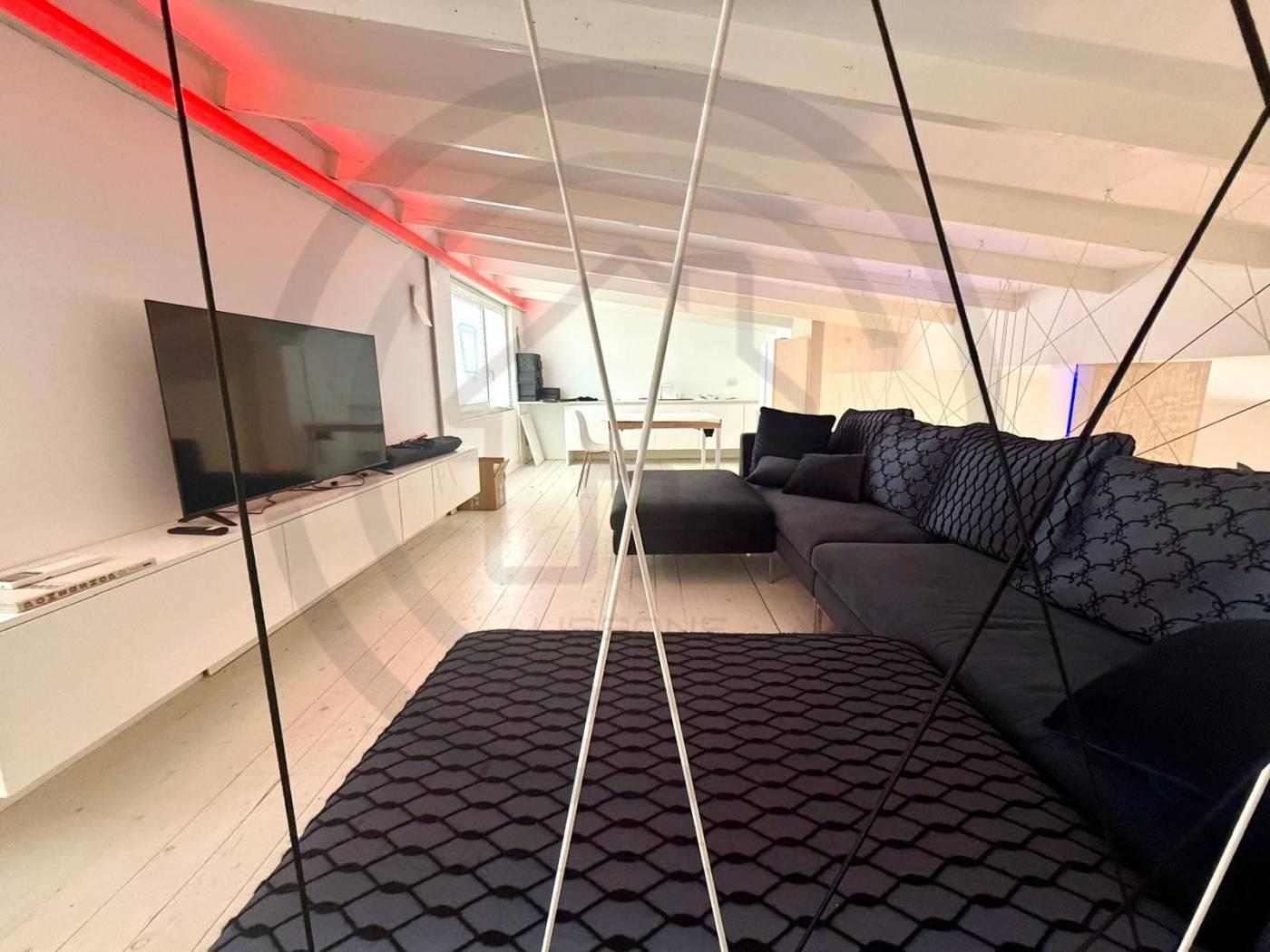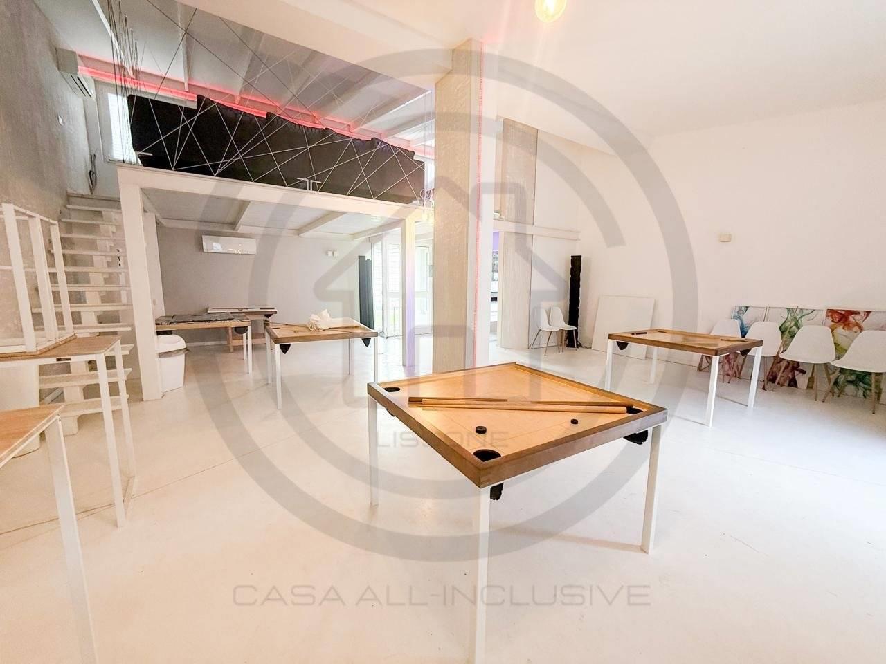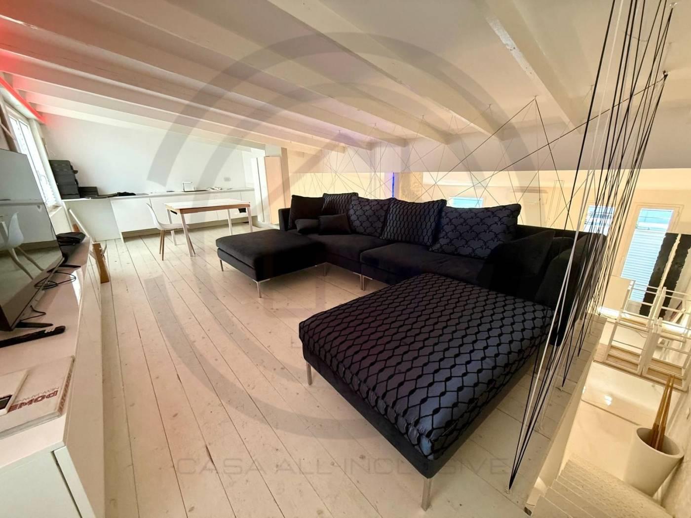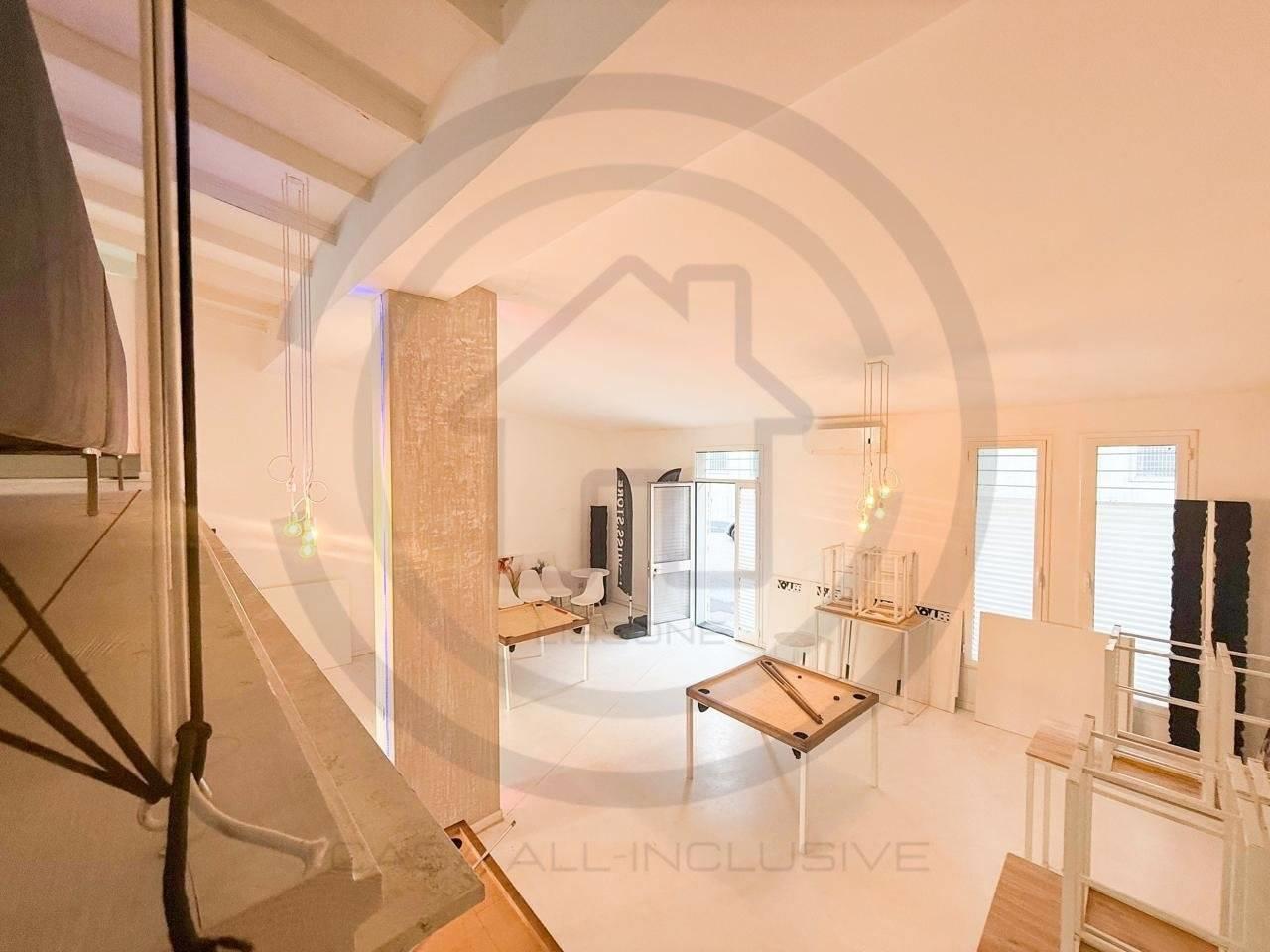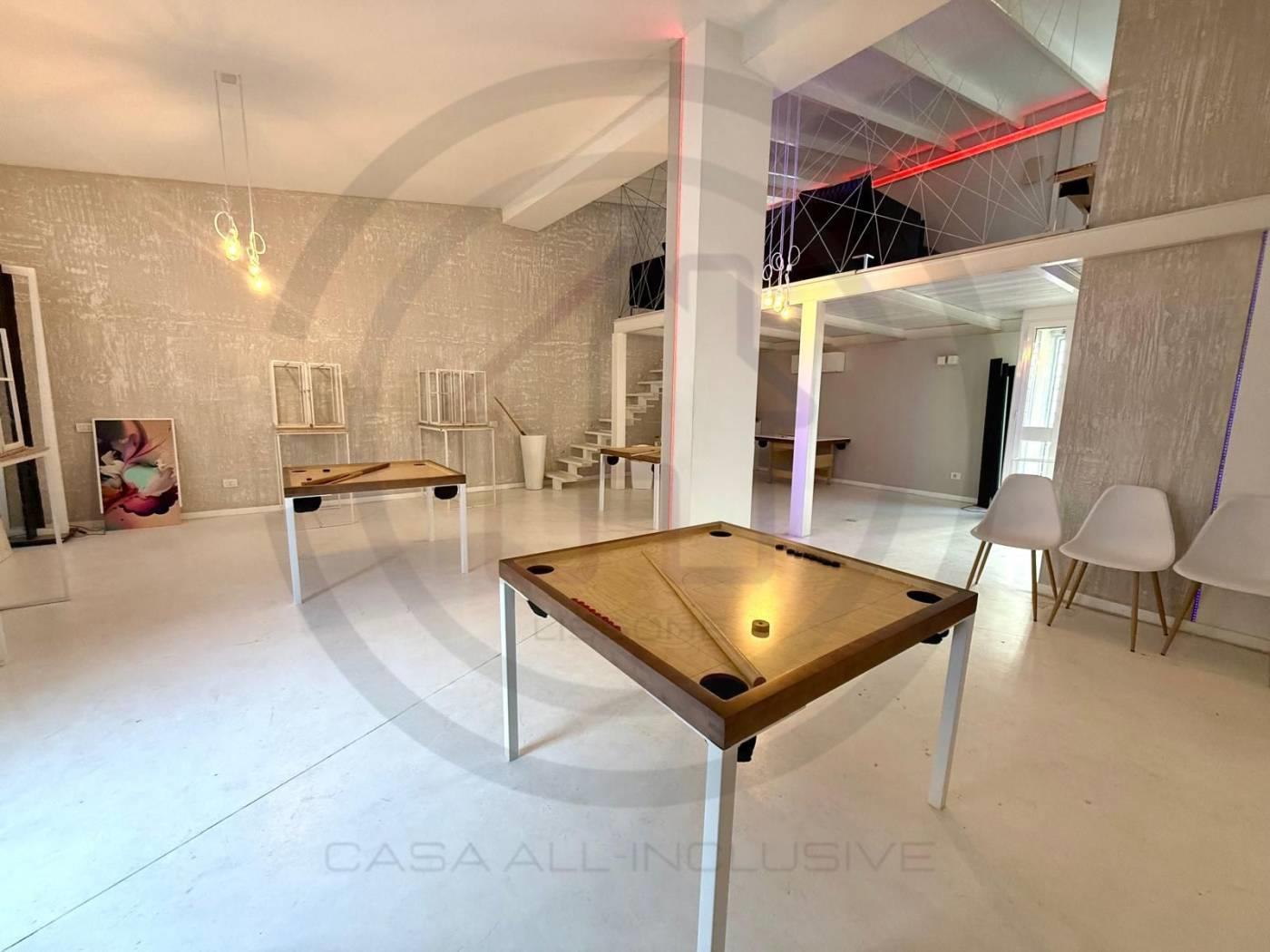 La soluzione posta al piano terra, e' composta da un open space di 80 mq circa, con un bagno al piano completo di sanitari e DOCCIA, tramite comodissima scala di DESIGN si accede alla zona del SOPPALCO, di 30 mq circa, dove e' stata ricavata una zona LIVING CON CUCINA completa di tutto il necessario.