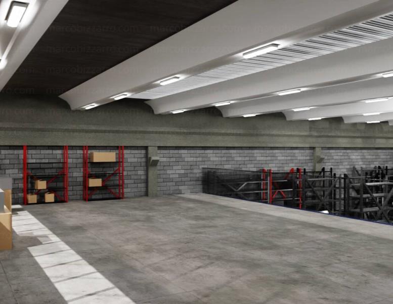 Piano Terra: 450 mq ca con un’altezza di 8,00 mt, campata unica priva di pilastri