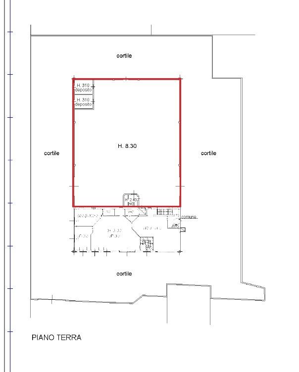 Capannone industriale al piano terra di mq. 750 circa - altezza utile mt. 8,50 - struttura dotata di mensole per carroponte. Ampio cortile di pertinenza esclusiva di oltre 1.300 mq. comodamente accessibile anche da mezzi pesanti. Ottimo stato di manutenzione generale.