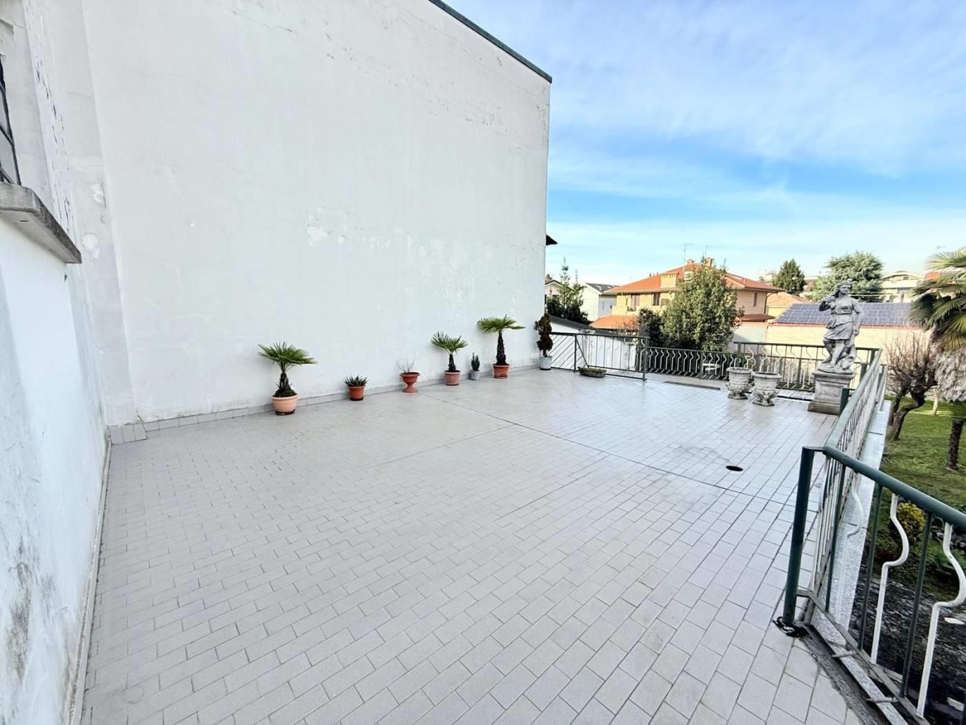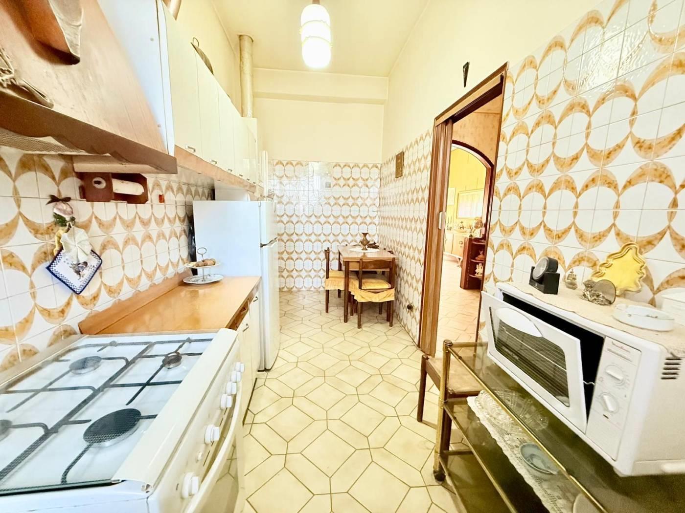 Al primo piano troviamo l'appartamento di 108 mq , a cui si accede da uno spettacolare terrazzo di 100 mq c/a esposto a sud, che lo caratterizza e ne costituisce un valore aggiunto. L'abitazione al suo interno si distingue per gli ambienti spaziosi e ben distribuiti. Una zona d'ingresso conduce al salone servito da un balcone e alla cucina separata, il reparto notte ospita una generosa camera matrimoniale, una cameretta e due bagni finestrati, uno con vasca e l'altro con doccia.