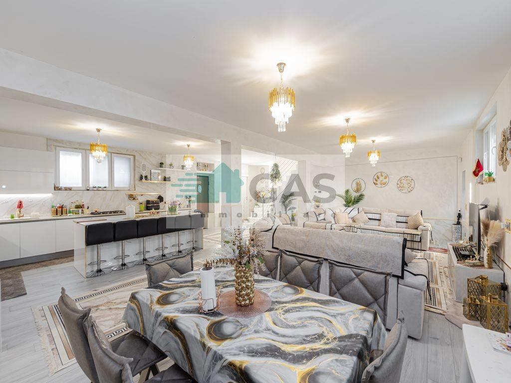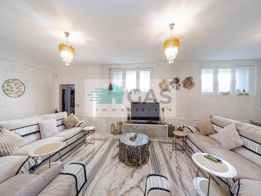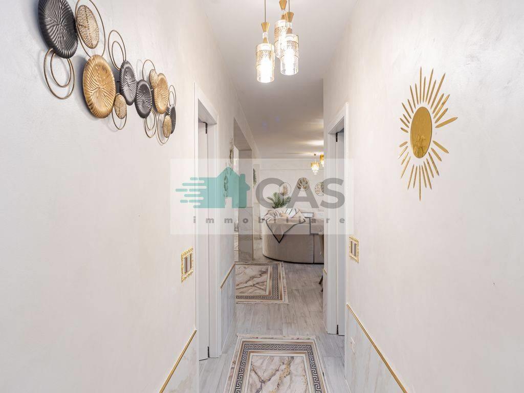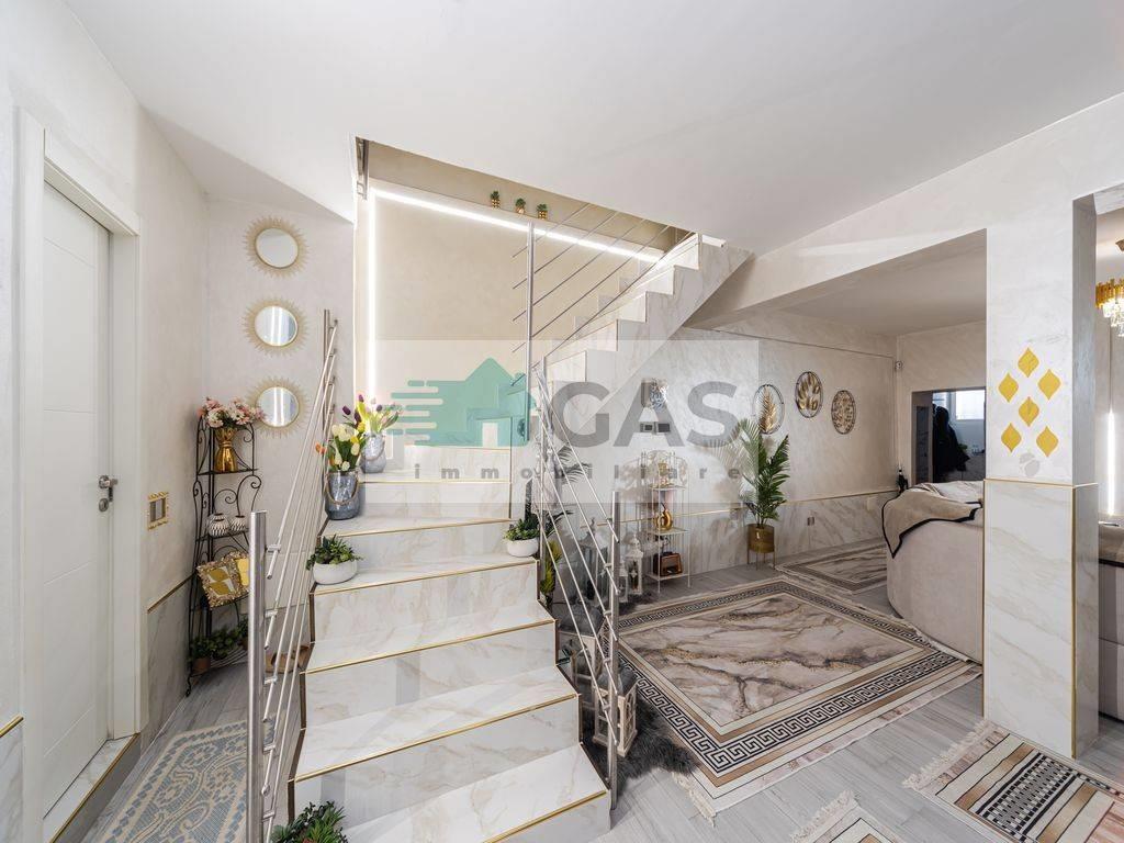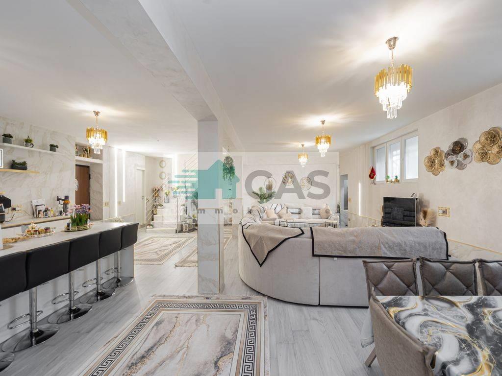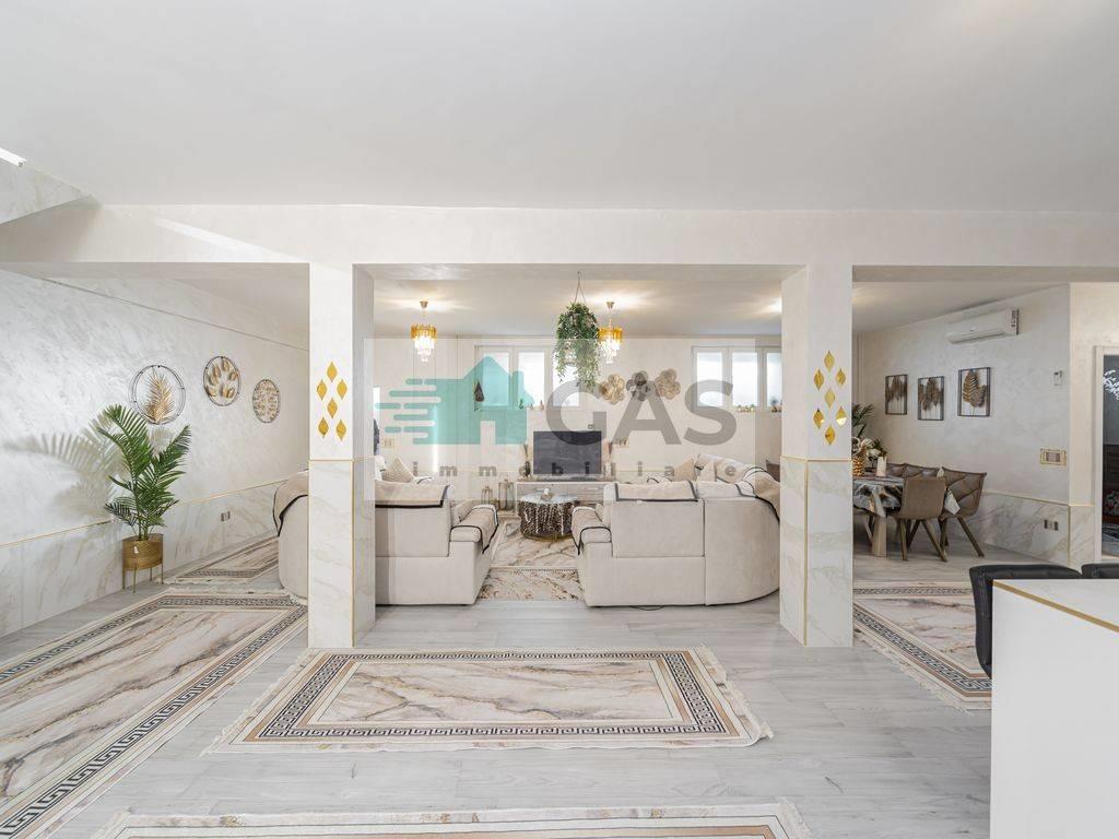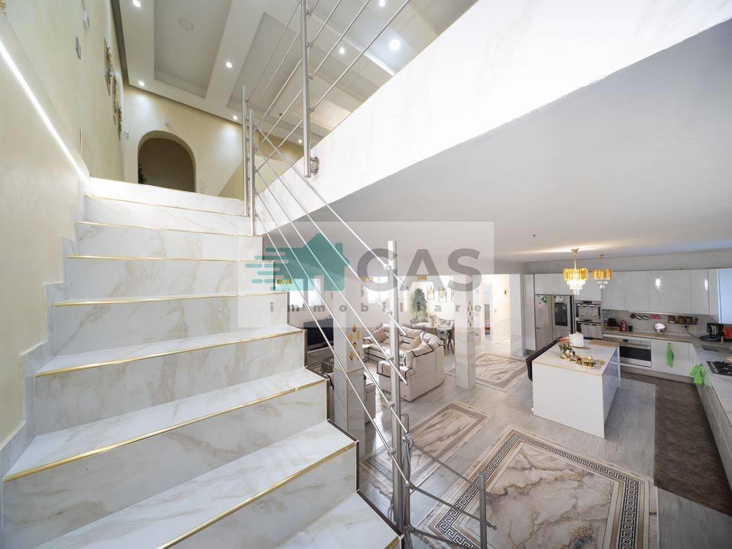 Il piano superiore ospita la zona giorno principale, con una cucina abitabile e un secondo salone di grandi dimensioni. La zona notte è composta da quattro camere, di cui due dotate di bagno privato; sono presenti inoltre una cabina armadio e un ulteriore bagno a servizio delle altre camere. La doppia esposizione garantisce luminosità e ariosità a tutti gli spazi.
