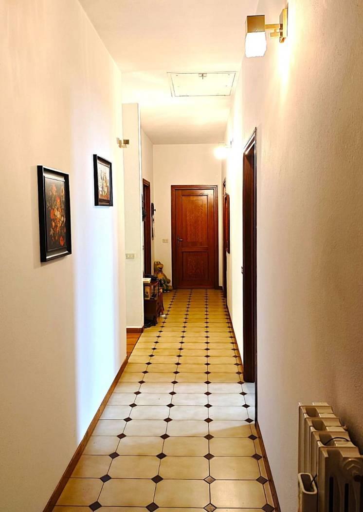 Al primo piano si sviluppa un ampissimo quadrilocale da 120 mq, composto da grande e luminoso soggiorno, cucina abitabile separata, camera matrimoniale con bagno padronale, tre camerette/studio e secondo bagno, il tutto collegato da lungo corridoio. Tutto il lato est dell'immobile è servito da ampio balcone che collega tutti i locali. Questo appartamento è eventualmente frazionabile per creare due unità nel caso l'immobile sia destinato a locazioni o affitto turistico.