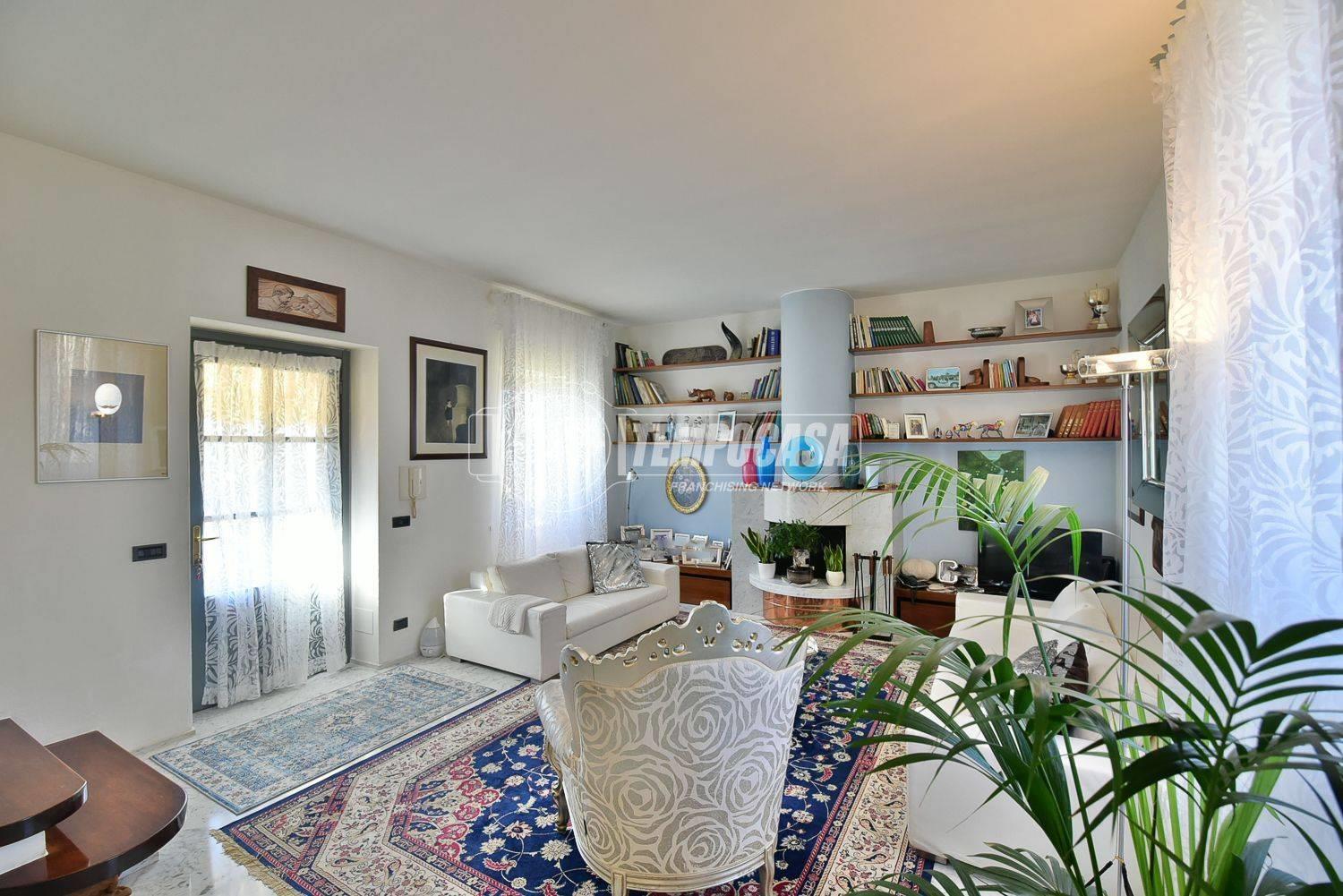 Entrando al piano terra mi trovo in un ambiente che colpisce subito per la cura dei dettagli: il soggiorno è ampio e luminoso, impreziosito da un CAMINO FUNZIONANTE e da un PAVIMENTO IN MARMO DI CARRARA, elemento che dà immediatamente la sensazione di una casa progettata con attenzione e materiali di pregio.