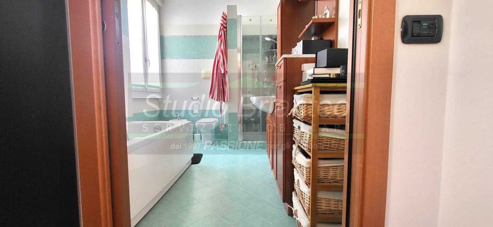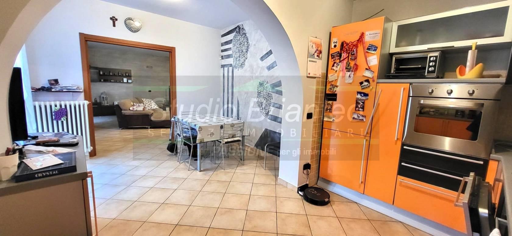 La soluzione ha un ingresso al piano terra ( ca. 85 mq ) dove si sviluppa l'intera zona giorno suddivisa in ampio soggiorno con doppia esposizione e camino con STUFA A PELLET, zona pranzo/cena, cucina ABITABILE, ripostiglio e disimpegno con bagno di servizio finestrato, tramite una comoda scala si accede al primo piano (ca. 70 mq ) composta da 2 CAMERE MATRIMONIALI (una di queste con uscita sul balcone) entrambe con CABINA ARMADIO e bagno padronale anch'esso finestrato.