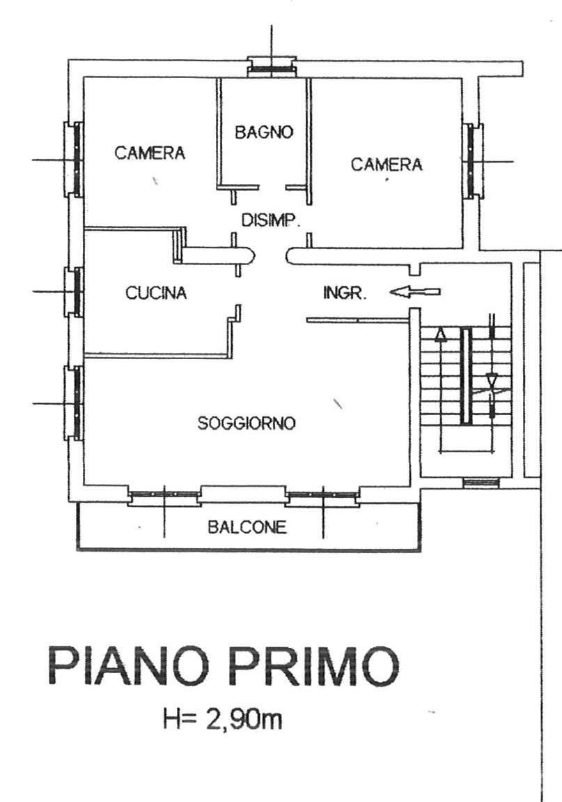 APPARTAMENTO PIANO PRIMO: ingresso, soggiorno con balcone, cucina abitabile, disimpegno, 2 camere, bagno classe energetica "E" EP gl, nren 198,07 kwh/m2anno