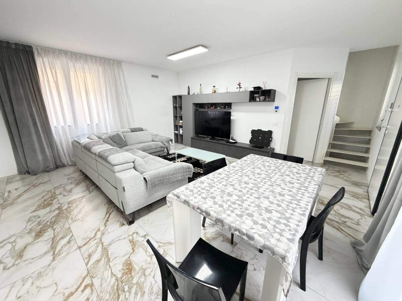 In zona centrale e a due passi dalla stazione dei treni, proponiamo in vendita un elegante terratetto unifamiliare, recentemente ristrutturato con finiture moderne e soluzioni tecnologiche all’avanguardia, ideale per chi cerca comfort, efficienza energetica e indipendenza. L’immobile si distingue per la classe energetica A4, garantendo consumi ridotti e massimo benessere abitativo. È dotato di impianto a pompe di calore con sistema VMC (ventilazione meccanica controllata), oltre a riscaldamento e raffrescamento a pavimento, pannelli solari per riscaldamento acqua calda e pannelli fotovoltaici, che assicurano un clima ottimale in ogni stagione. Gli infissi in triplo vetro ed il cappotto termico contribuiscono ulteriormente all’isolamento termico e acustico. Al piano terra troviamo una luminosa zona giorno composta da soggiorno con angolo cottura e un comodo bagno di servizio. Salendo al primo piano si sviluppa la zona notte, composta da tre camere da letto ben distribuite, un secondo bagno e un ampio balcone che offre uno spazio esterno vivibile. Completa la proprietà un giardino piastrellato al piano terra, perfetto per momenti di relax all’aperto, e due posti auto privati che aggiungono praticità e valore all’immobile. Una soluzione abitativa moderna, efficiente e pronta da vivere, perfetta per famiglie o per chi desidera un’abitazione indipendente senza rinunciare al comfort.