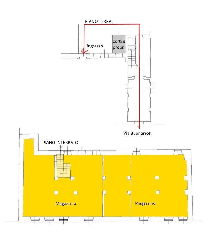 MONZA Buonarroti, a due passi dal centro di Monza e dalla stazione FS, proponiamo in vendita un ampio deposito posto al piano seminterrato con piccolo cortiletto di pertinenza (posto al piano terra). L'immobile viene venduto al rustico, sono da realizzare gli impianti e tutte le finiture interne. Accesso dalle parti comuni del condominio. Spese condominiali di circa 400 euro/anno. Immobile non soggetto all'obbligo di certificazione energetica.