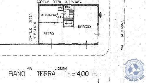 via Romagna angolo via Liguria, in primaria via commerciale cittadina, in posizione privilegiata per visibilità ed accessibilità, proponiamo ampia superficie commerciale angolare, di ca 120 mq, con due depositi interrati adiacenti (dove sono posizionati i motori dell'impianto di climatizzazione), per complessivi 54 mq. ca, .