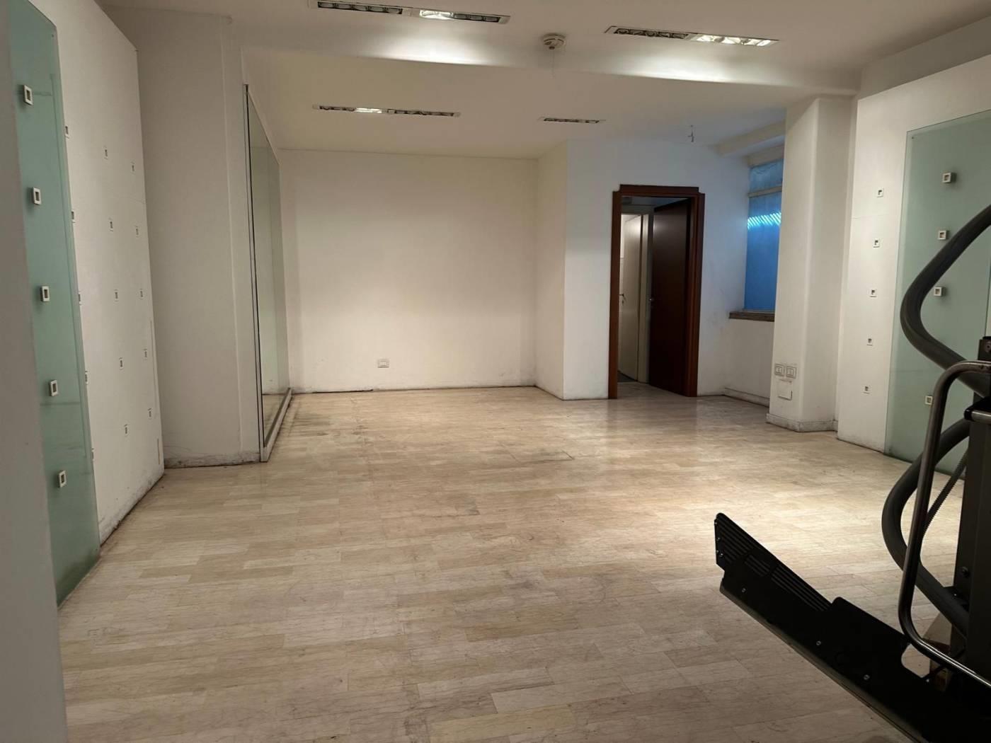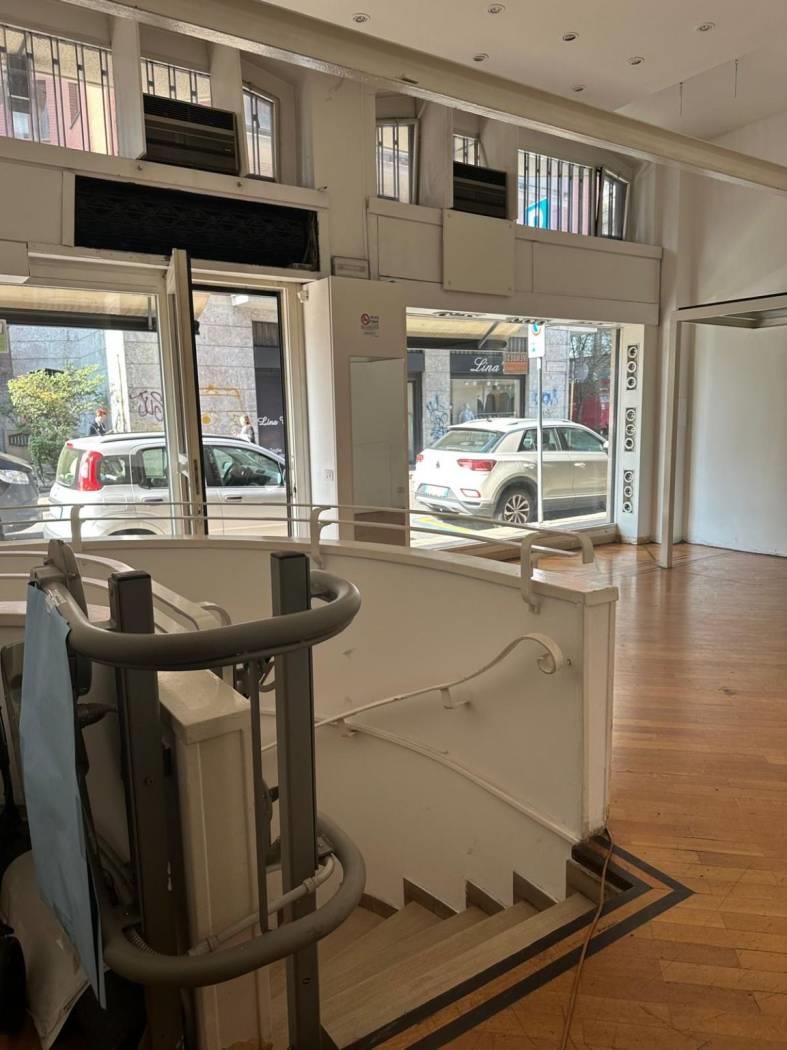 Il locale è disposto su due piani, offrendo ampi spazi per diverse tipologie di esercizi. Le finiture signorili, i vetri blindati e il pavimento in legno conferiscono un'atmosfera elegante e accogliente. Inoltre, il soppalco d'arredo in vetro aggiunge un tocco di modernità e funzionalità.