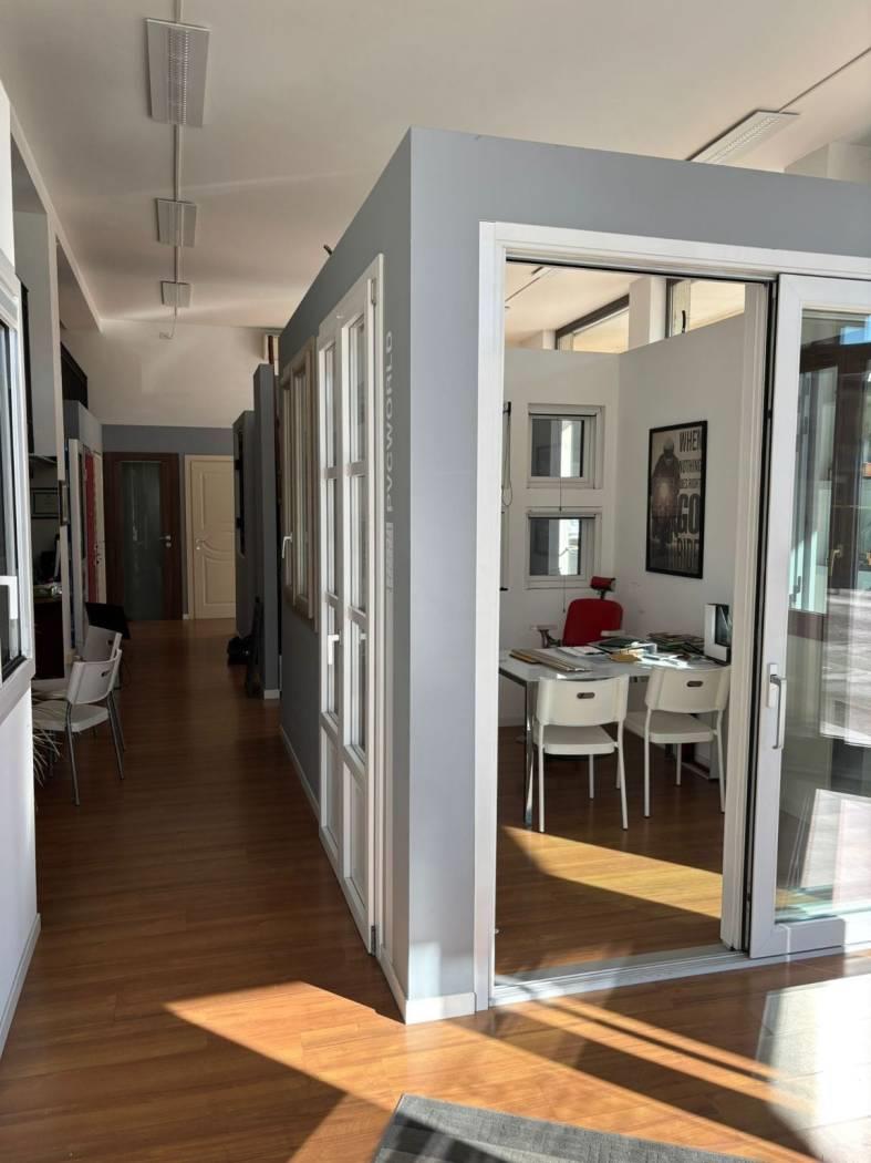 L’immobile ha una superficie commerciale di circa 140 mq, di cui 107 mq al piano terra con servizio e doppia altezza (da 3,95 mt a 2,00 mt), ed è completo di impianto elettrico, riscaldamento e aria condizionata. Completano la proprietà 33 mq di soppalco con altezza di 1,95 mt.
