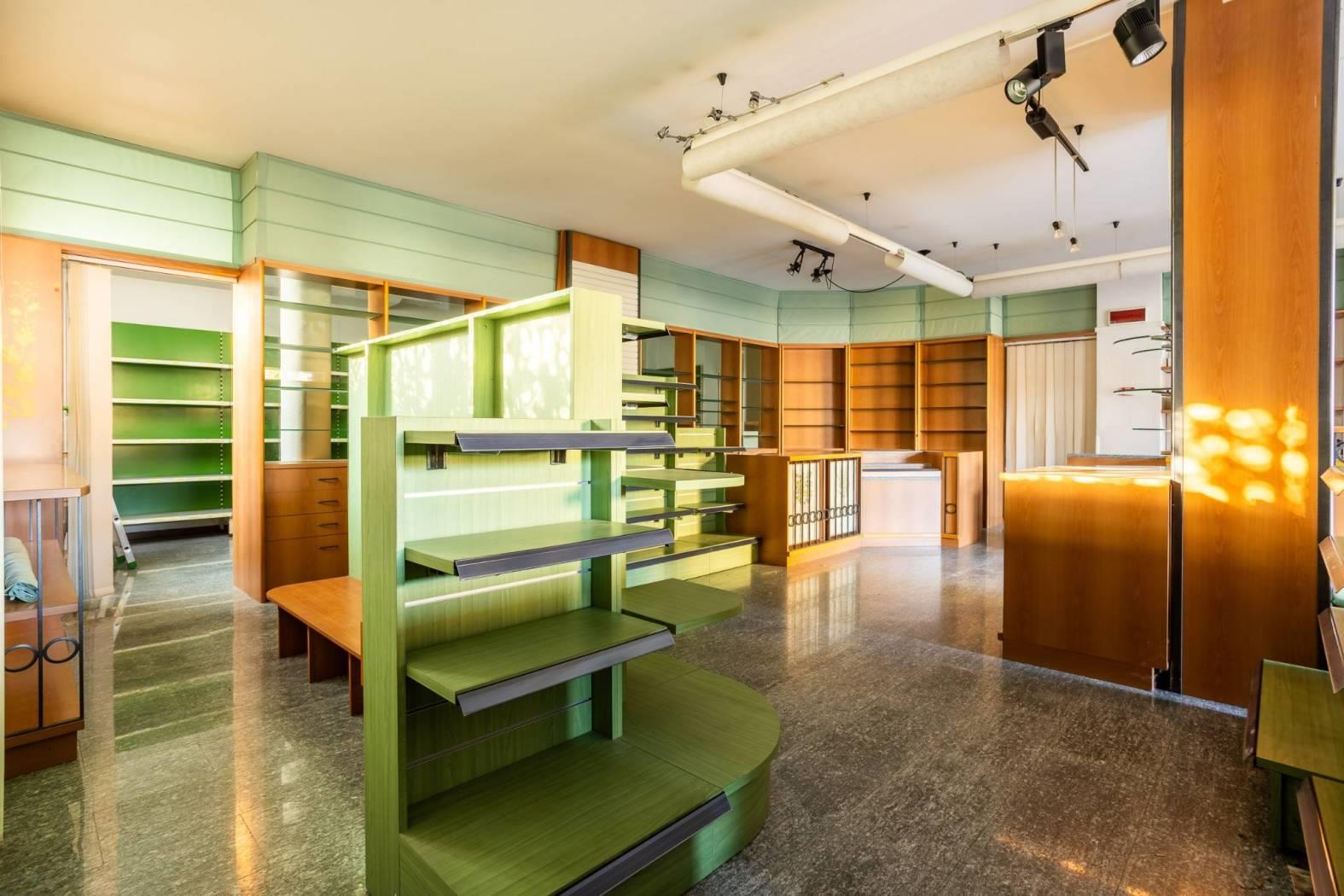 Il negozio più ampio ha una superficie di 310 mq., gode di un'altezza di 3 mt e di innumerevoli vetrate ad est/sud ed ovest che gli donano una gradevole luce naturale; dotato di bagno, di zona ufficio e retro. Pavimenti in marmo e parquet, pareti in mattoni a vista. Caldaia a condensazione autonoma e con impianto per la climatizzazione estiva, impianto d'allarme perimetrale e volumetrico.